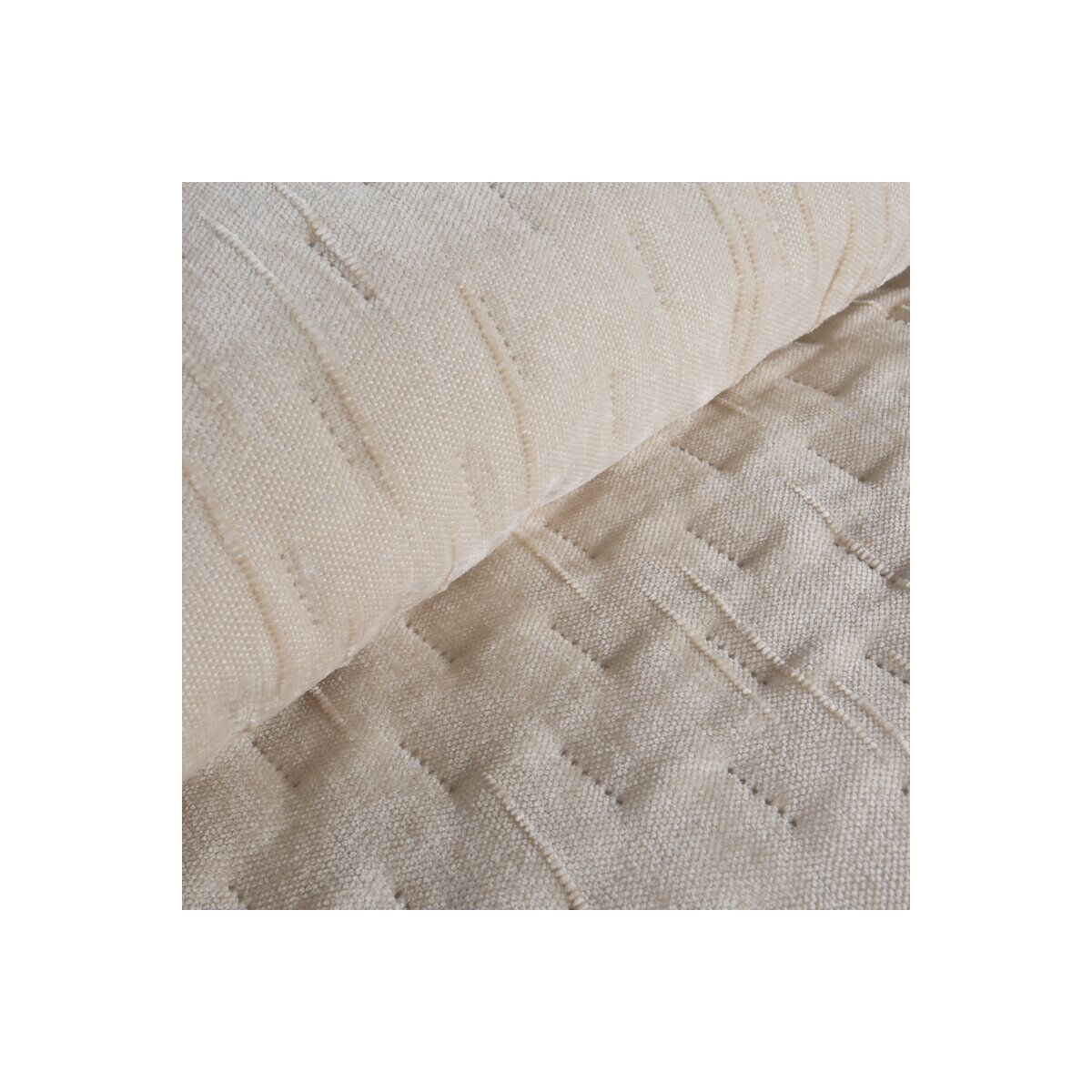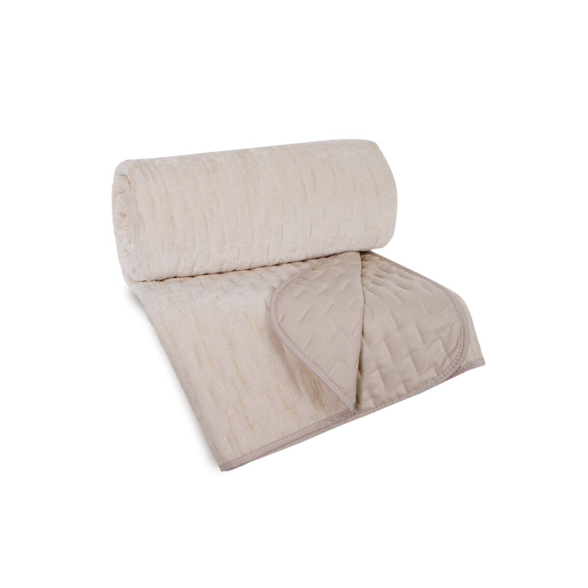 The bedspread is crafted from a fabric that mimics chenille, offering a luxurious texture and elegant appearance. Dimensions: width 220 cm, length 240 cm. Color: cream. Composition: 100% polyester. This stylish and durable bedspread is perfect for enhancing the comfort and aesthetic of your bedroom with its sophisticated design.