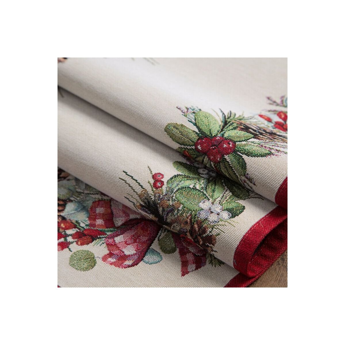 Enhance your seasonal decor with this beautiful festive tapestry tablecloth. Measuring 100 cm by 100 cm, this tablecloth is perfectly sized for small tables, adding a touch of elegance and celebration to your dining space. The natural color complements any setting, while the luxurious weight of 400 GSM ensures durability and quality.