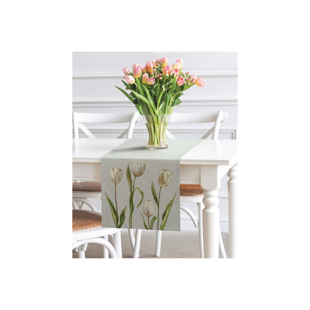 Gobelin Tablecloth, Width: 140 cm, Length: 180 cm, Color: Light Grey, Weight: 410 GSM, Composition: 63% Polyester, 34% Cotton, 3% Acrylic