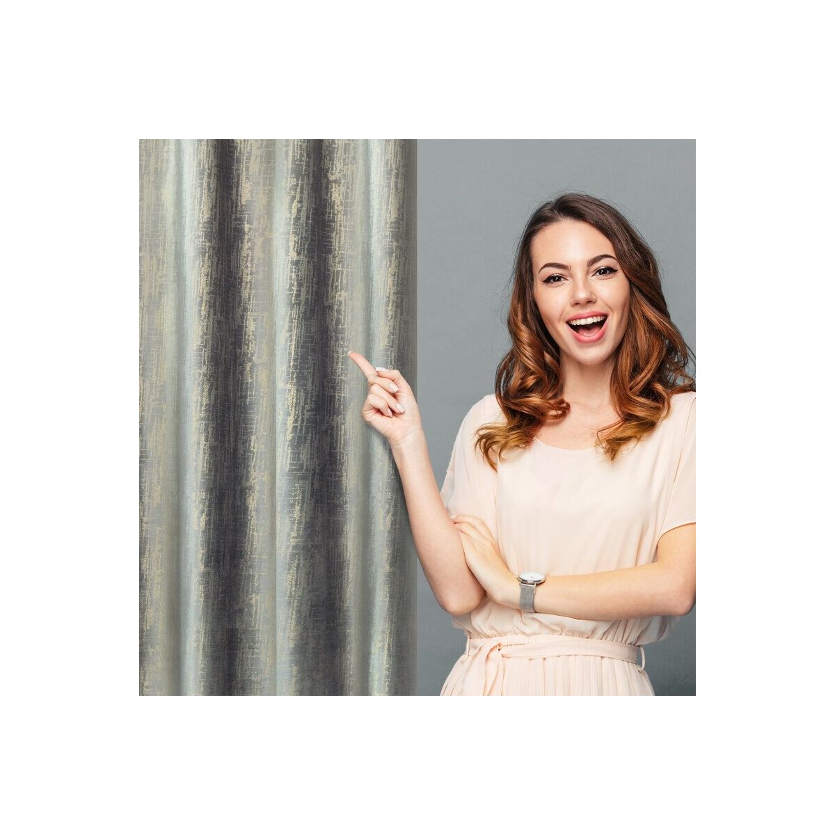 Velvet curtain adorned with a champagne print. Width: 140 cm, Length: 250 cm, Color: Gray, Density: 200 GSM, Composition: 100% Polyester. This elegant curtain offers a sophisticated touch, ideal for enhancing your interior with a refined and luxurious atmosphere. The premium velvet fabric ensures durability and an exquisite texture, while the subtle champagne design adds a hint of opulence. Perfect for creating privacy and a cozy ambiance in any room, this curtain stands out for its quality craftsmanship and chic aesthetic appeal.