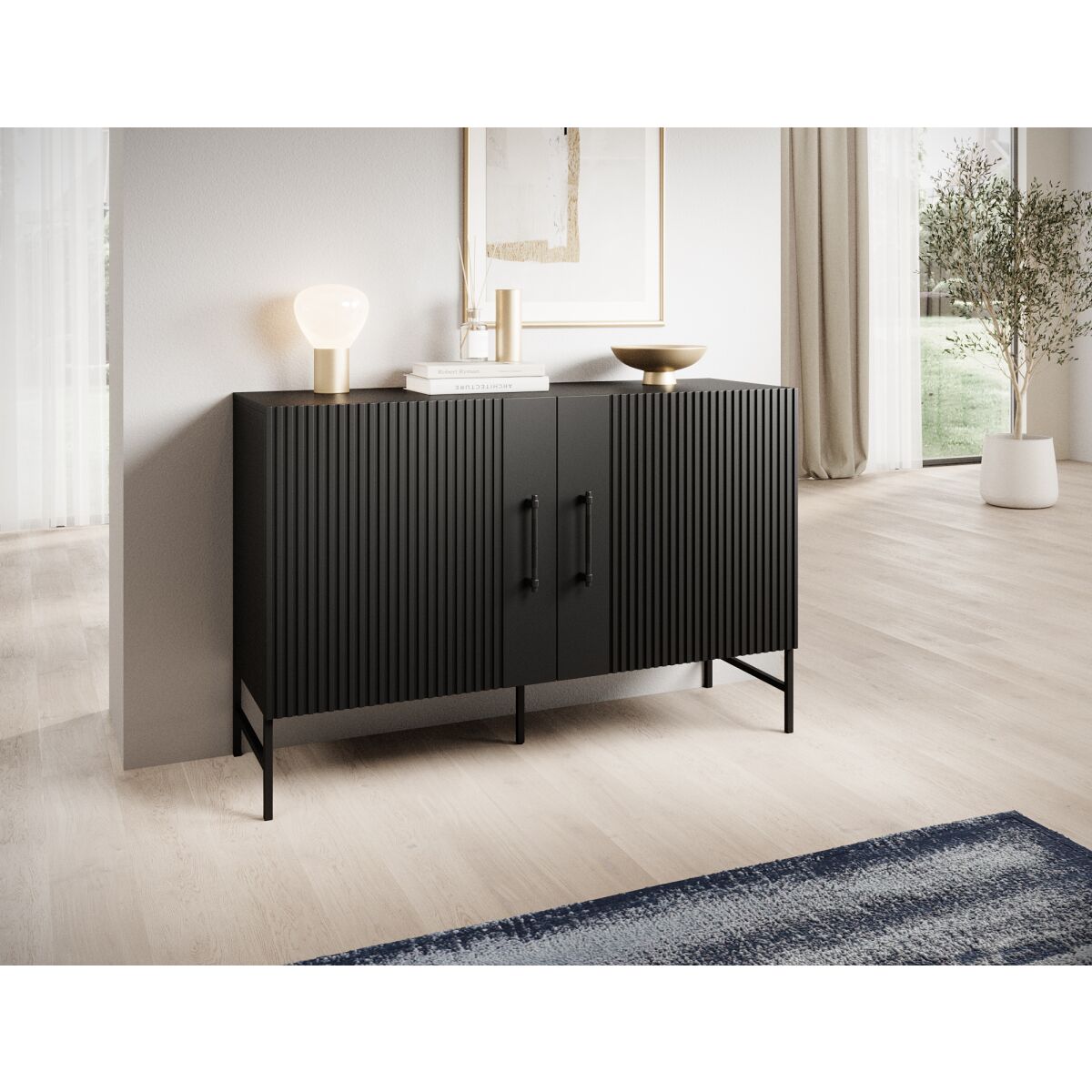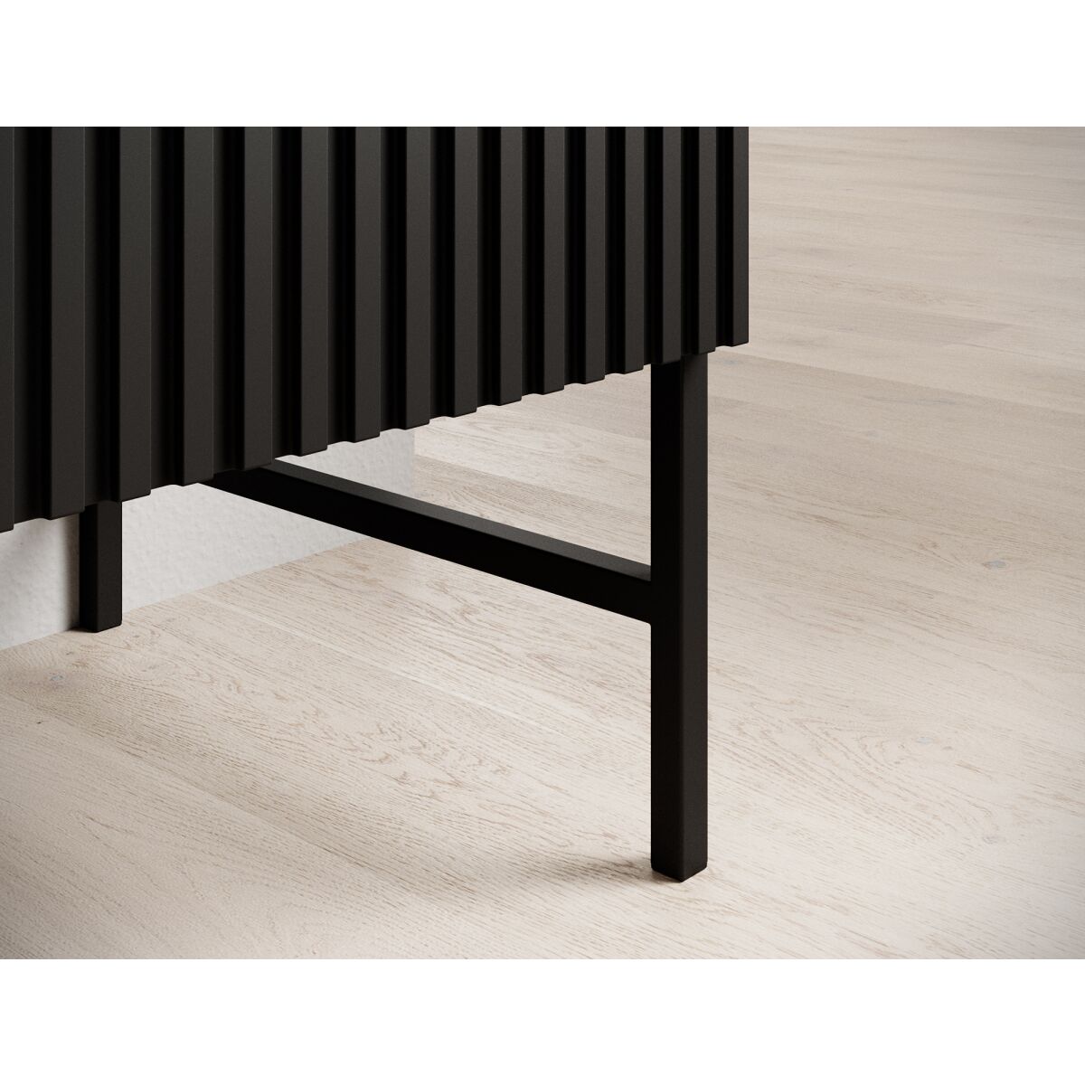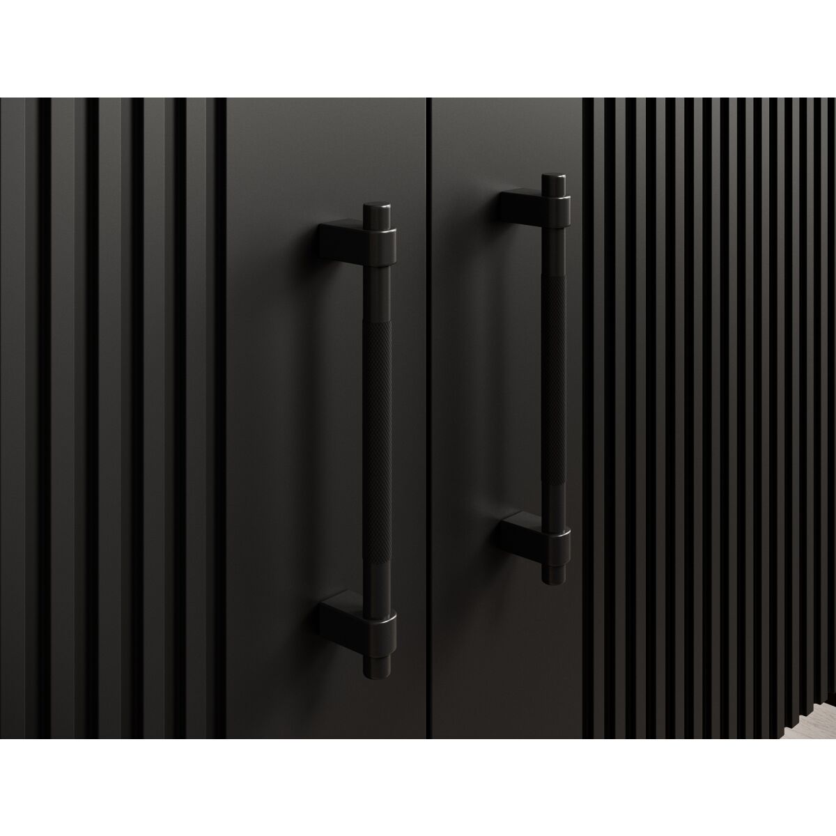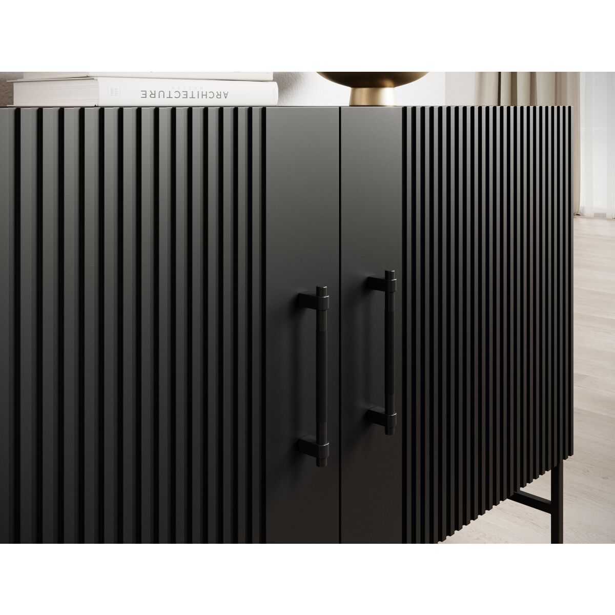The dresser from the Raftt Collection is an excellent blend of modern design and functionality. Its solid construction is made from laminated particleboard, while the grooved fronts from foil-coated MDF give it a unique character, highlighting the industrial style of the furniture. The whole piece rests on black metal legs, powder-coated for stability and durability, while also adding a sense of lightness. Black aluminum handles complement the design, ensuring easy drawer and cabinet access. The option to mount it on the wall further enhances safety. This dresser fits perfectly into loft, industrial, and modern interiors, offering both practicality and design.
