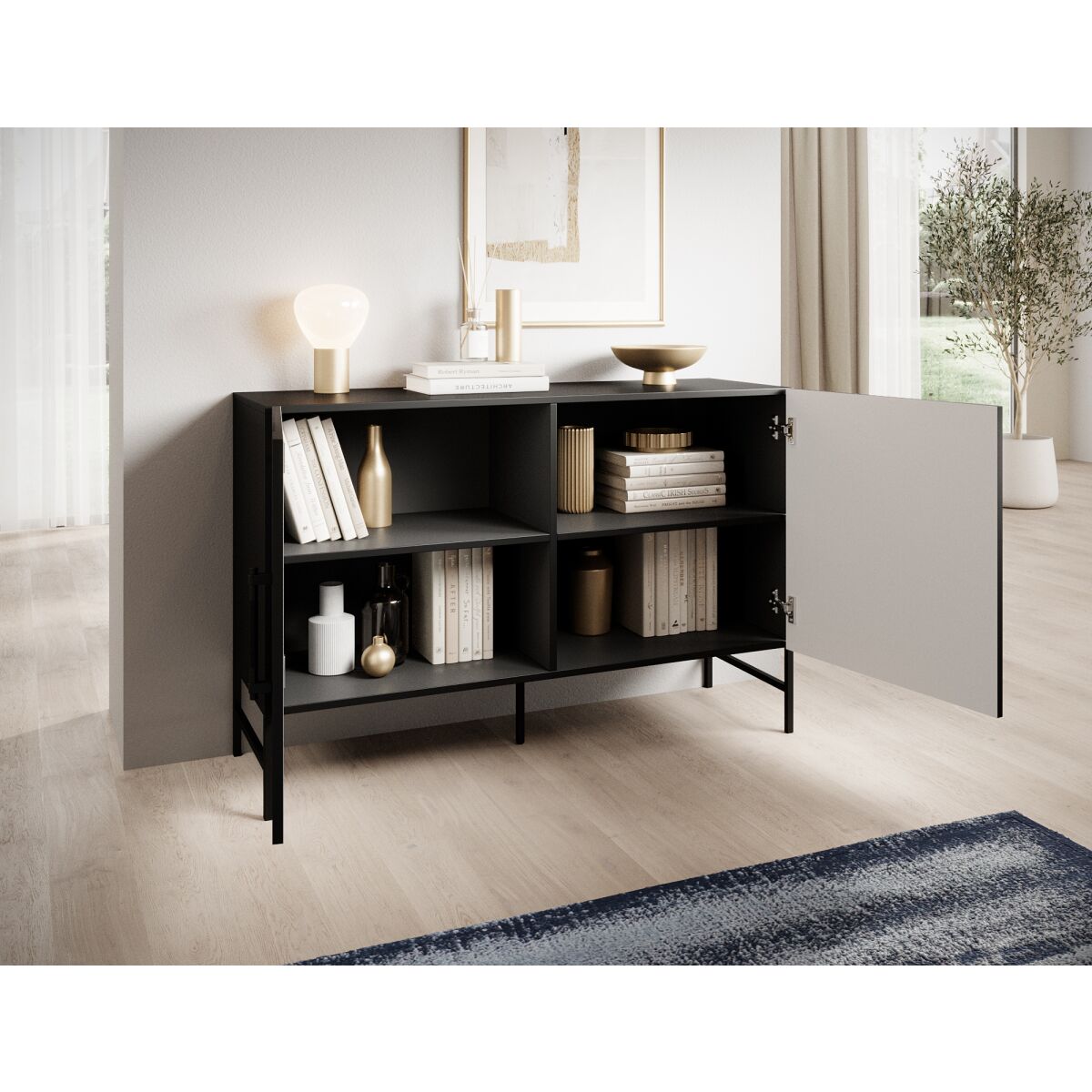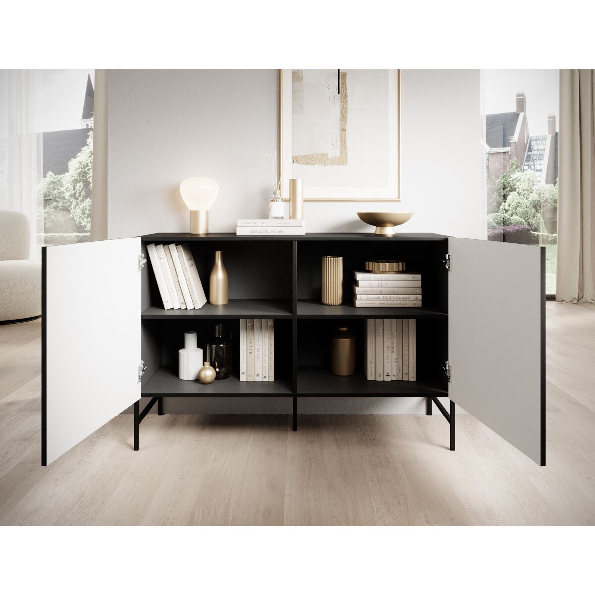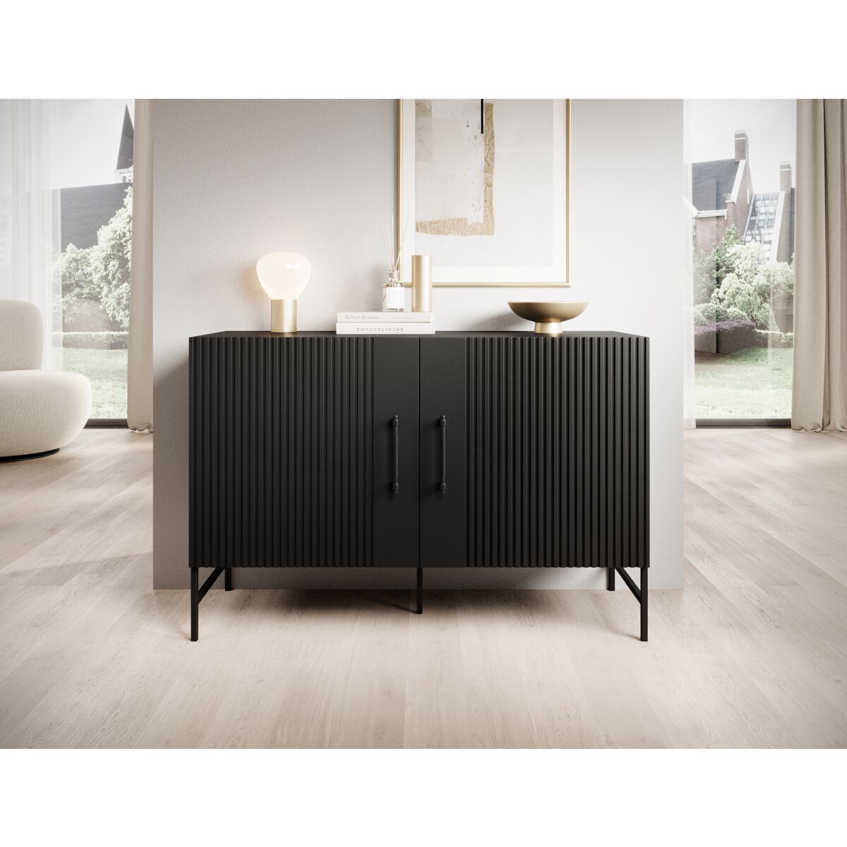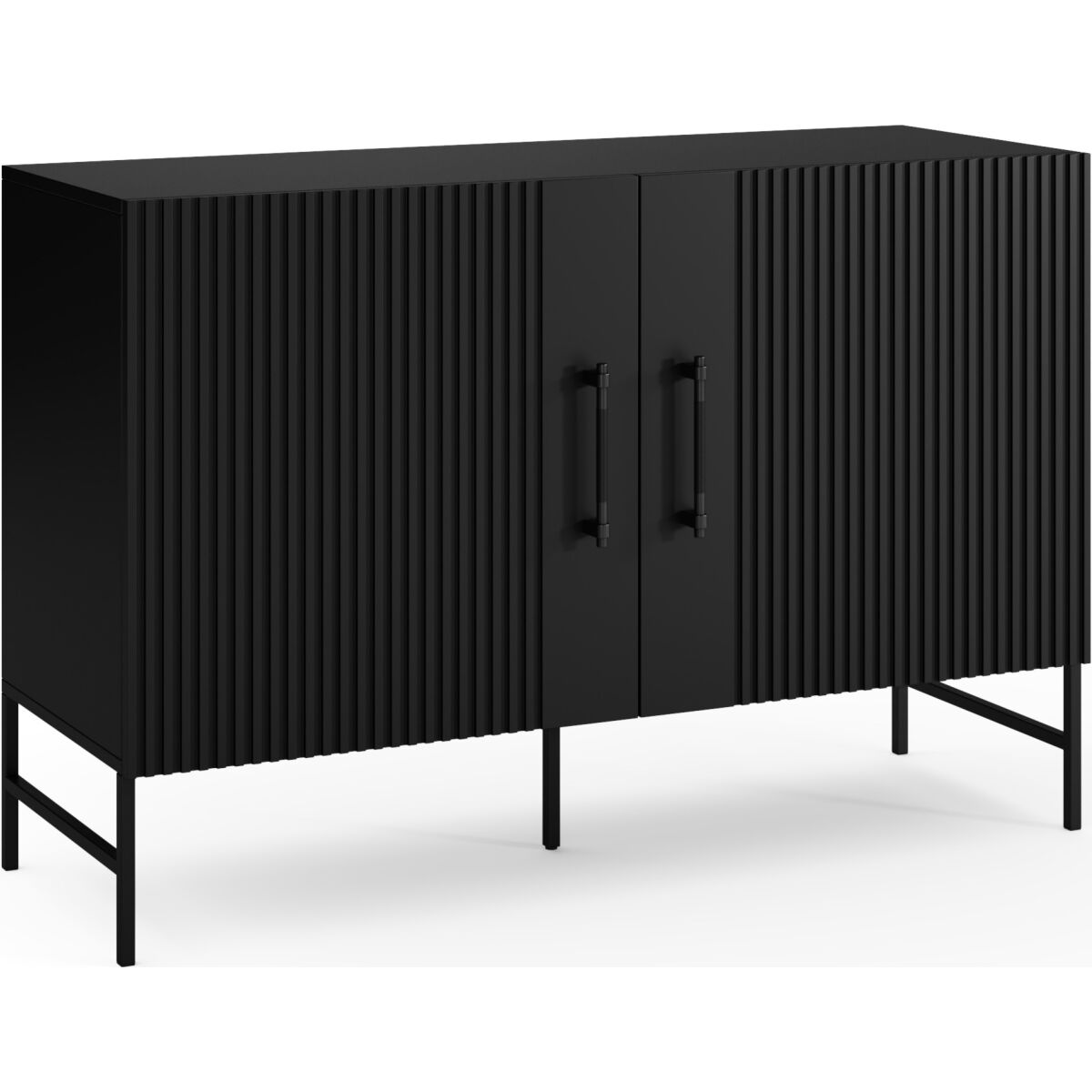 The dresser from the Raftt Collection is an excellent blend of modern design and functionality. Its solid construction is made from laminated particleboard, while the grooved fronts from foil-coated MDF give it a unique character, highlighting the industrial style of the furniture. The whole piece rests on black metal legs, powder-coated for stability and durability, while also adding a sense of lightness. Black aluminum handles complement the design, ensuring easy drawer and cabinet access. The option to mount it on the wall further enhances safety. This dresser fits perfectly into loft, industrial, and modern interiors, offering both practicality and design.