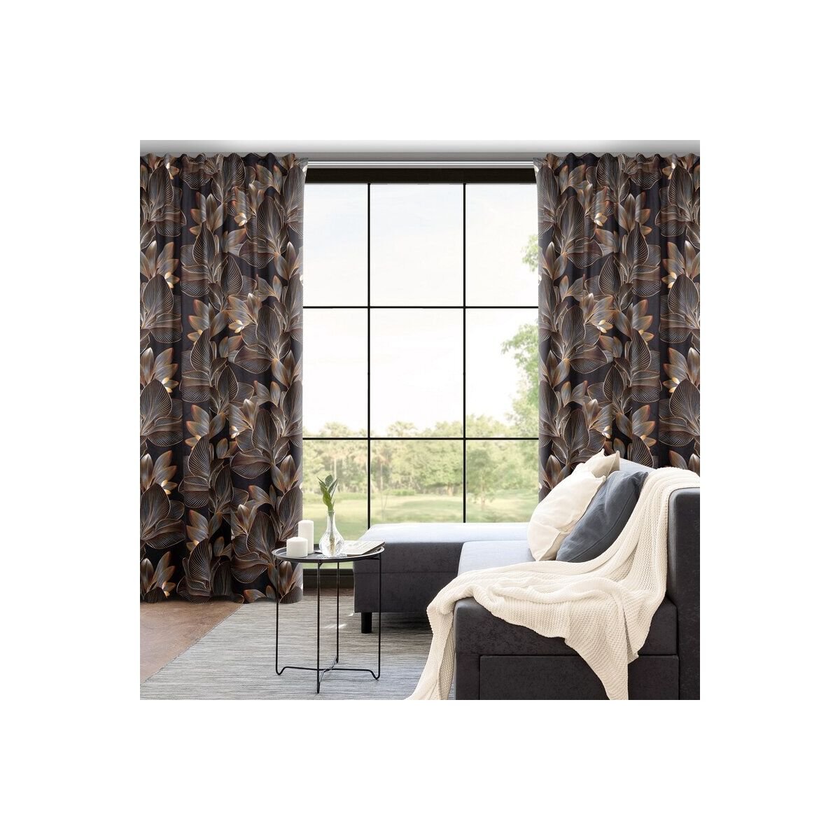 The LARISA curtain stands out with its sophisticated design and high-quality craftsmanship. The rich black color combined with a subtle floral pattern adds a touch of elegance and charm to any room. Its thoughtful construction with concealed tabs ensures easy hanging and a neat appearance. Perfect for those looking to enhance their home decor with a stylish and functional window treatment.
