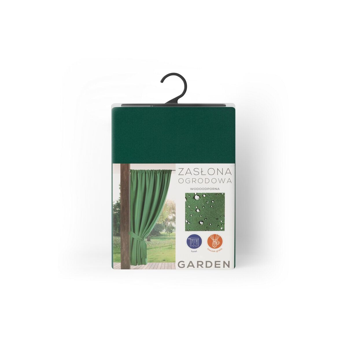 Ready-made outdoor curtain crafted from waterproof fabric, featuring a tunnel design with a width of 155 cm and a length of 200 cm. The curtain comes in a dark green hue, has a weight of 180 GSM, and is made from 100% polyester. This high-quality curtain is perfect for enhancing outdoor spaces, providing both durability and style.