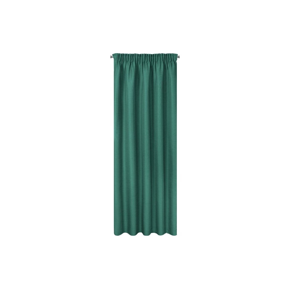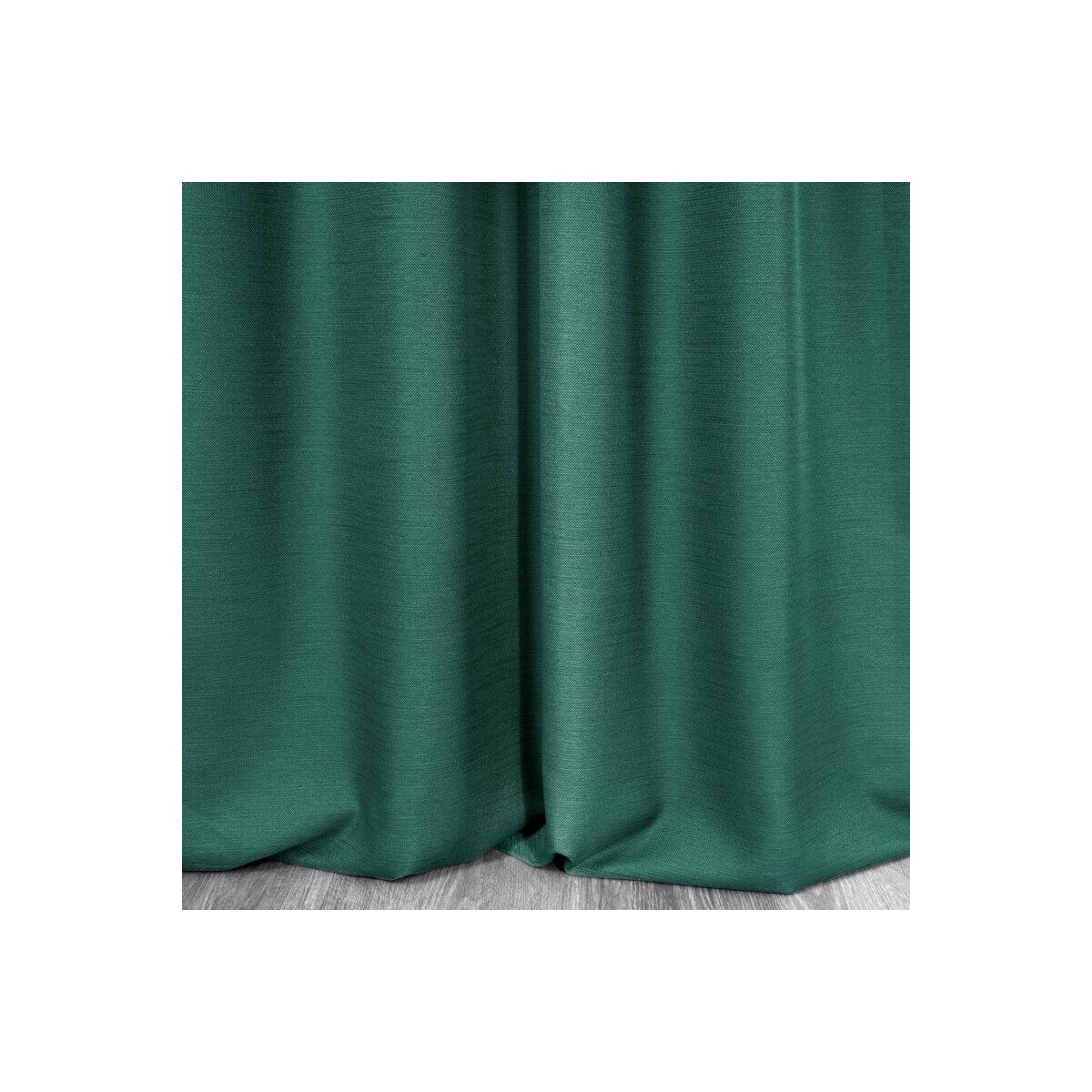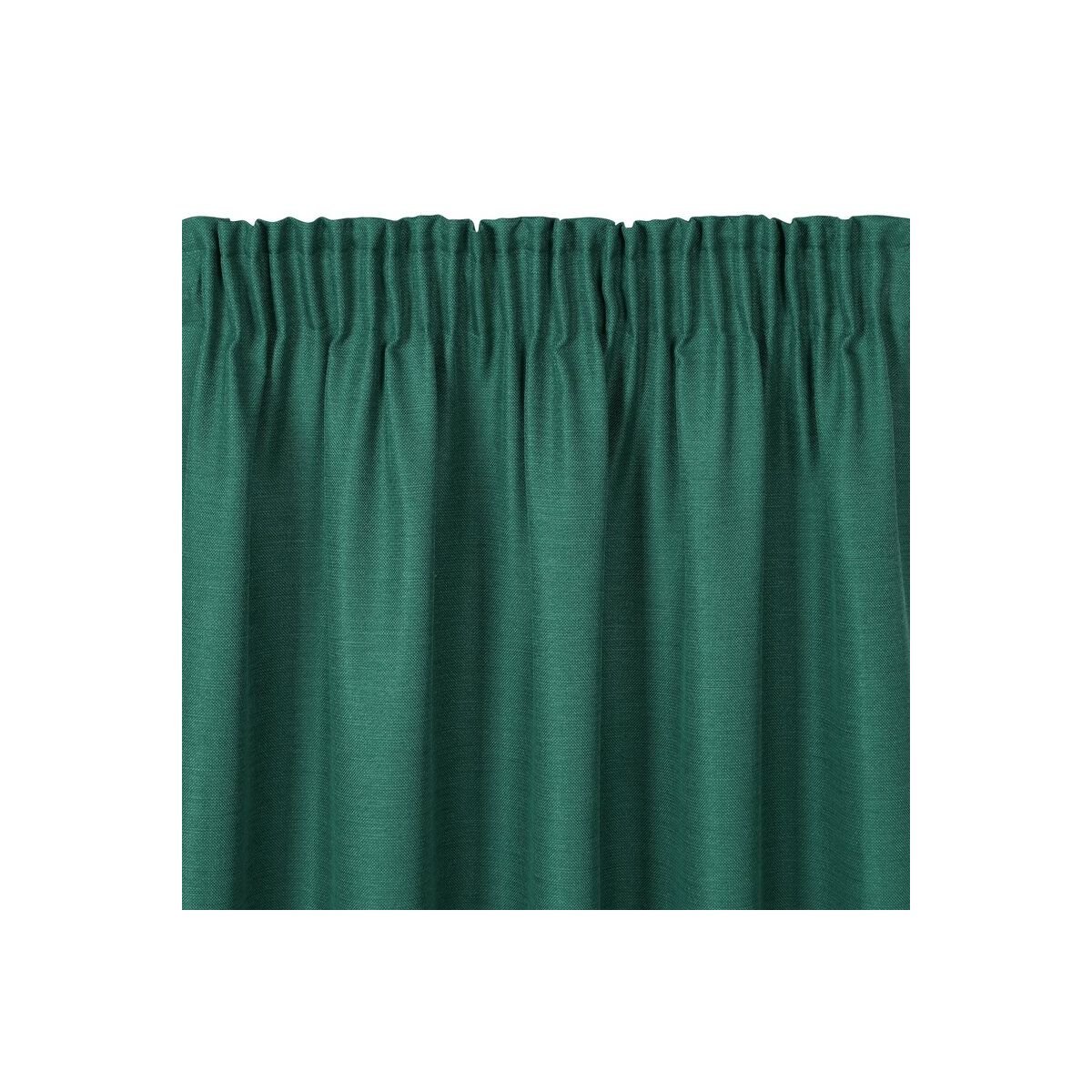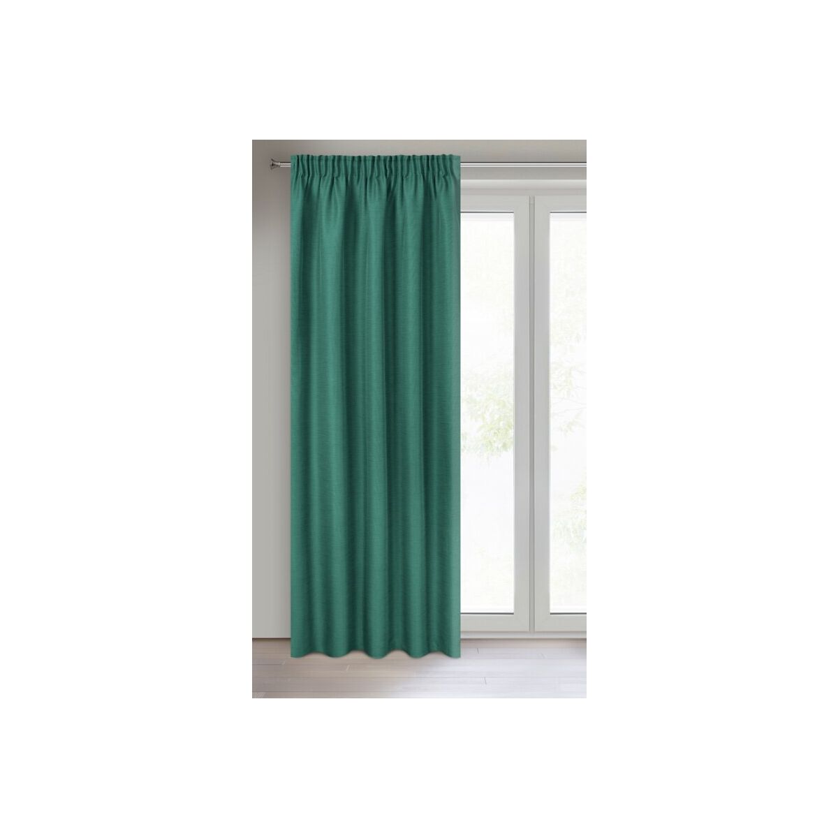 A simple, solid-colored curtain with a fabric-like texture, designed to be easily draped, creating soft waves. Width: 140 cm, Length: 270 cm, Color: Green, Weight: 187 GSM, Composition: 100% Polyester.
