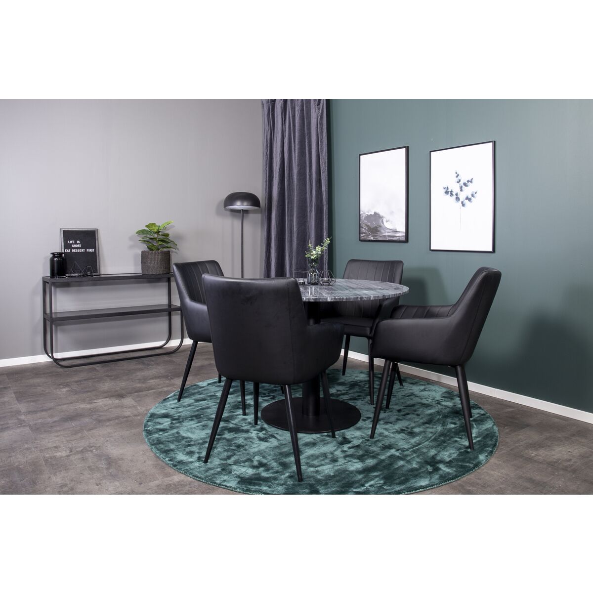 – Material: Glass tabletop, Steel legs