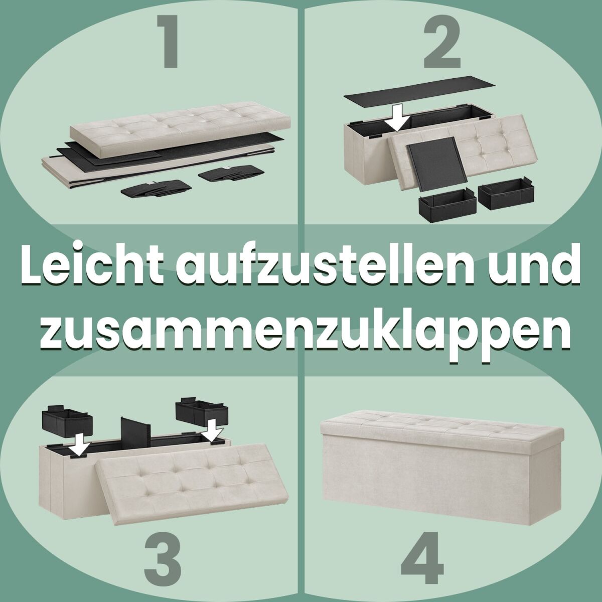 Multi-Functional Ottoman with Storage, Bench Seat, 38 x 110 x 38 cm, Foldable, Footstool, Supports Up to 300 kg, Perfect for Living Room, Bedroom, Hallway, Slate Gray