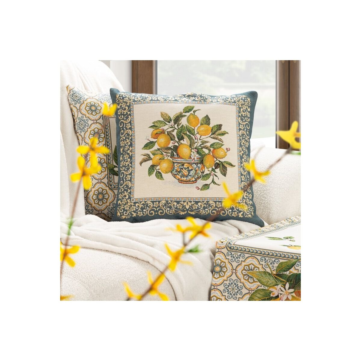 Tapestry Cushion Cover Dimensions: 45 cm x 45 cm, Color: Natural, Fabric Weight: 400 GSM, Composition: 68% Polyester, 32% Cotton.