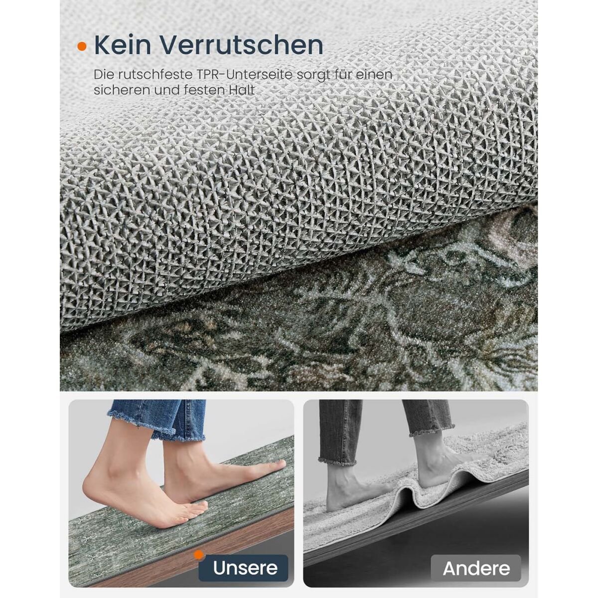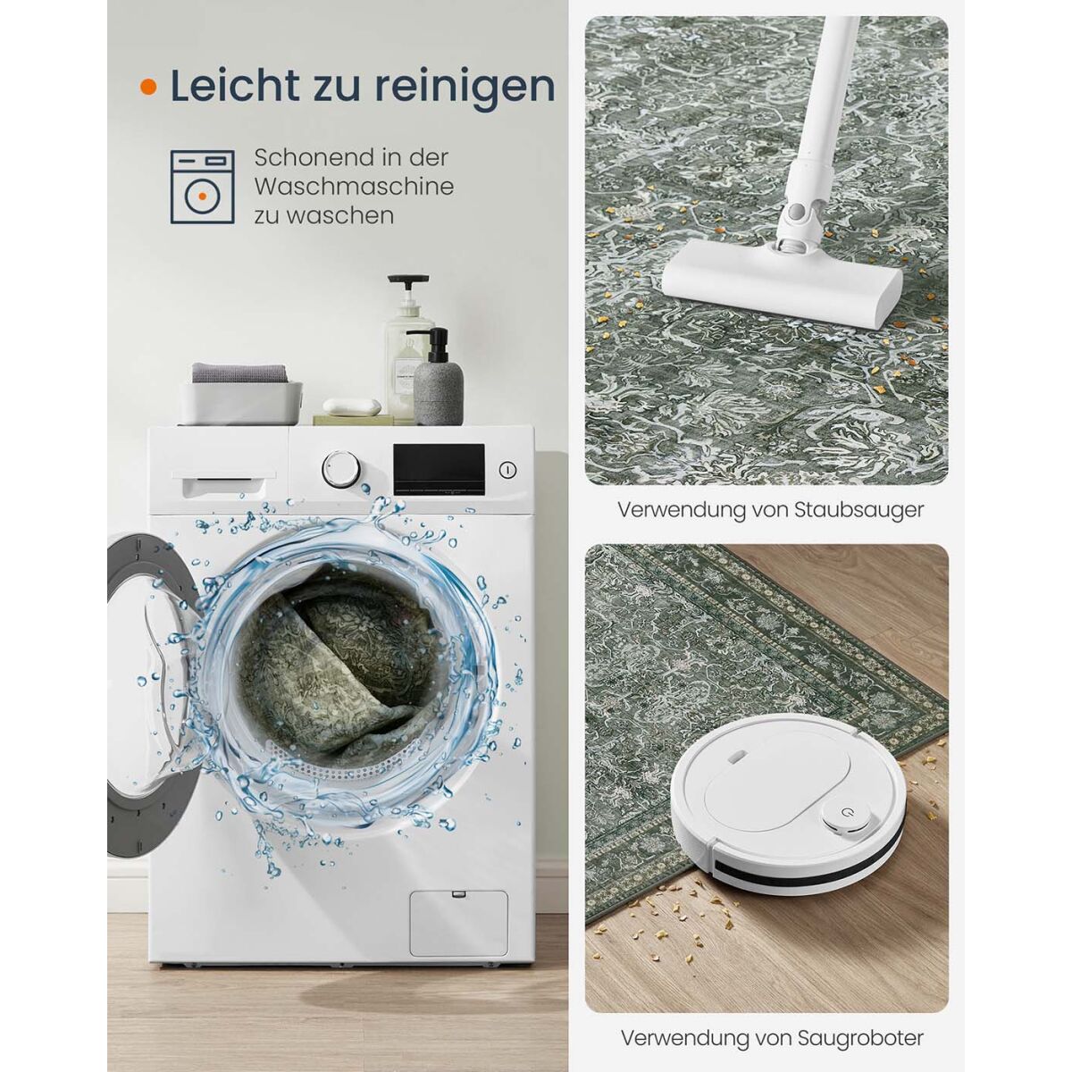 Этот ковёр в винтажном стиле от SONGMICS HOME станет идеальным дополнением к вашему дому, придавая элегантности любой комнате. Изготовленный в насыщенном лесном зелёном цвете, он гармонично смотрится как в гостиной, так и в спальне. Этот роскошный, мягкий ковёр выполнен из высококачественного полиэстера, фетра и TPR, что обеспечивает идеальное сочетание мягкости и долговечности. Противоскользящее основание гарантирует безопасность, что делает его практичным выбором для оживлённых домов. С размерами 160 x 230 см, его удлинённый размер обеспечивает достаточное покрытие, повышая комфорт и привлекательность вашего жилого пространства. Кроме того, ковёр можно стирать в машине, что облегчает уход за ним. Выберите этот стильный и практичный ковёр, чтобы обновить ваш домашний декор.