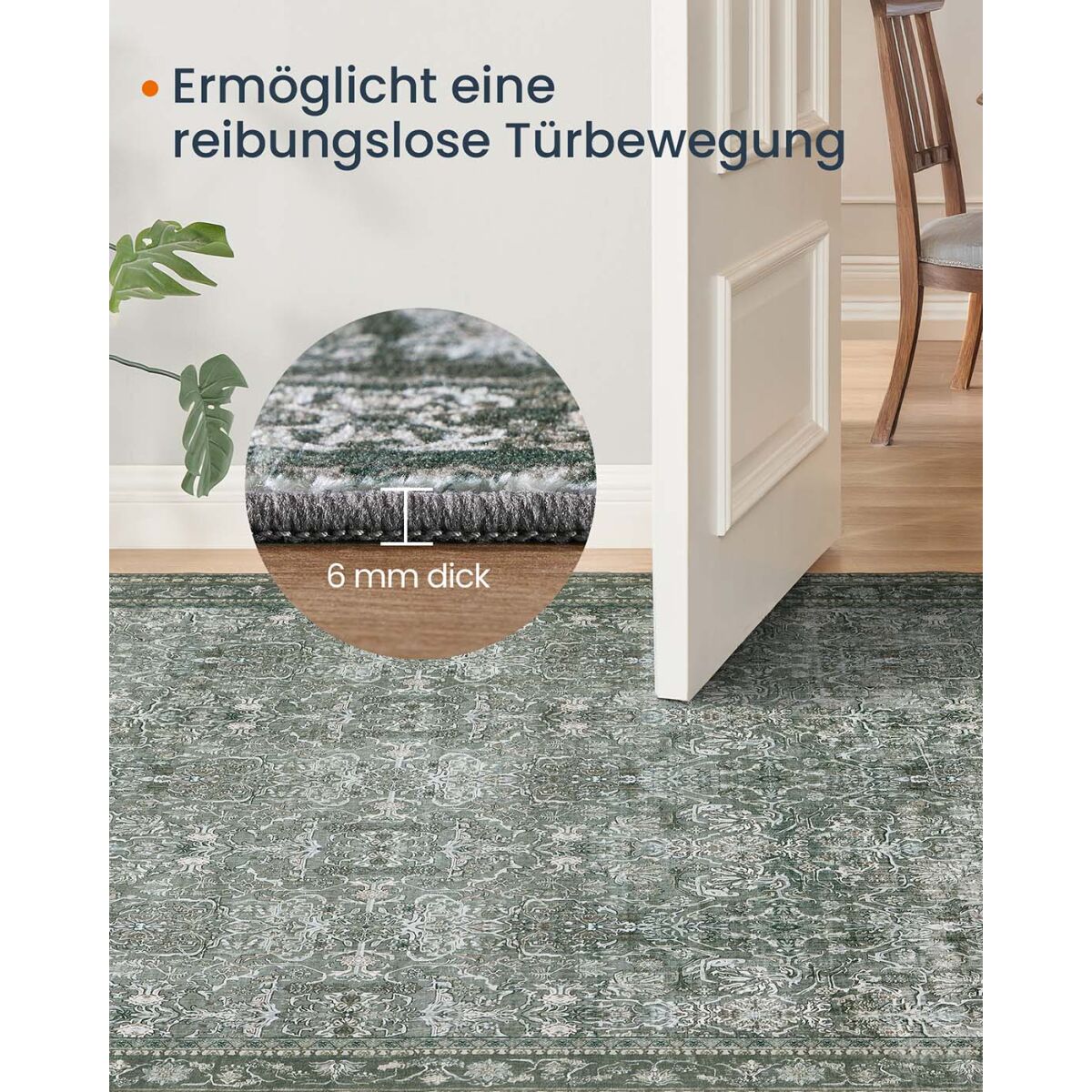 Ковер в винтажном стиле 160 x 230 см, машинная стирка, лесной зеленый