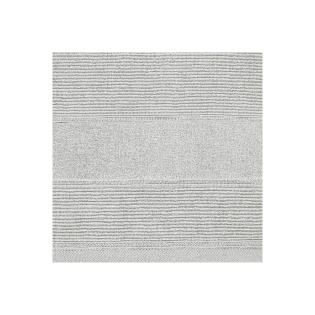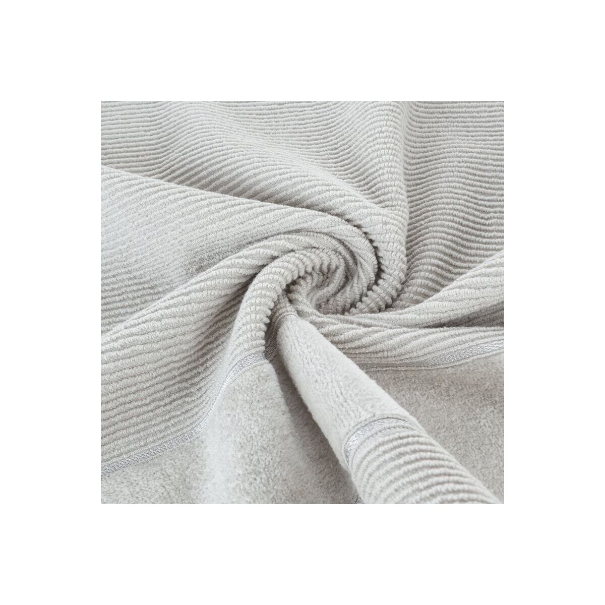 Полотенце из хлопка с ребристой текстурой и велюровым краем. Размеры: ширина 50 см, длина 90 см. Цвет: серебристый. Вес: 500 г/м². Состав: 100% хлопок.