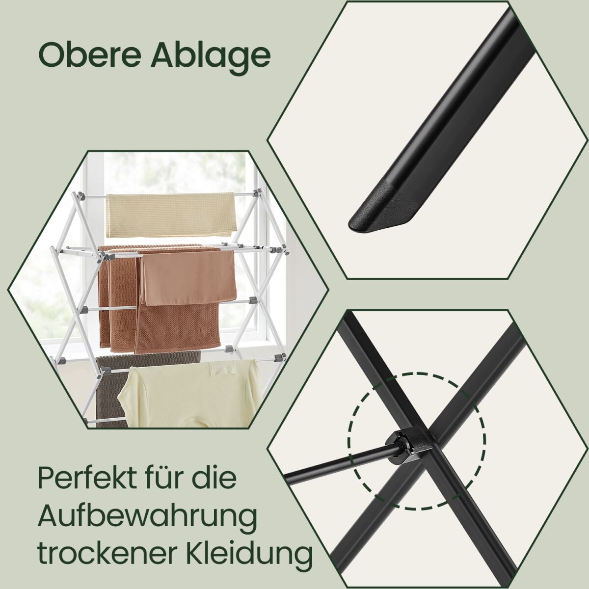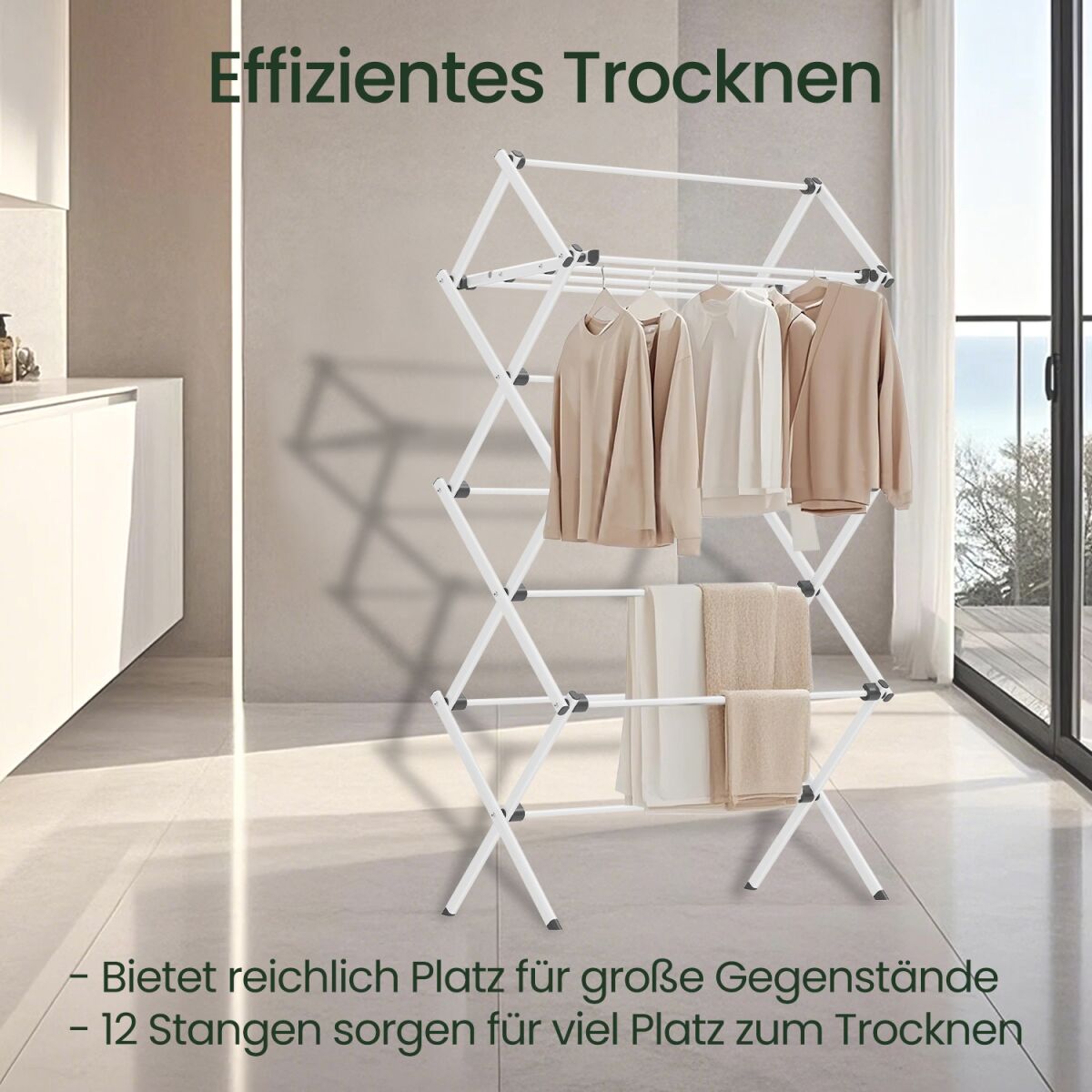 Компактная складная сушилка для одежды. Экономит пространство благодаря прочной стальной конструкции. Идеально подходит для использования внутри помещений и на улице.