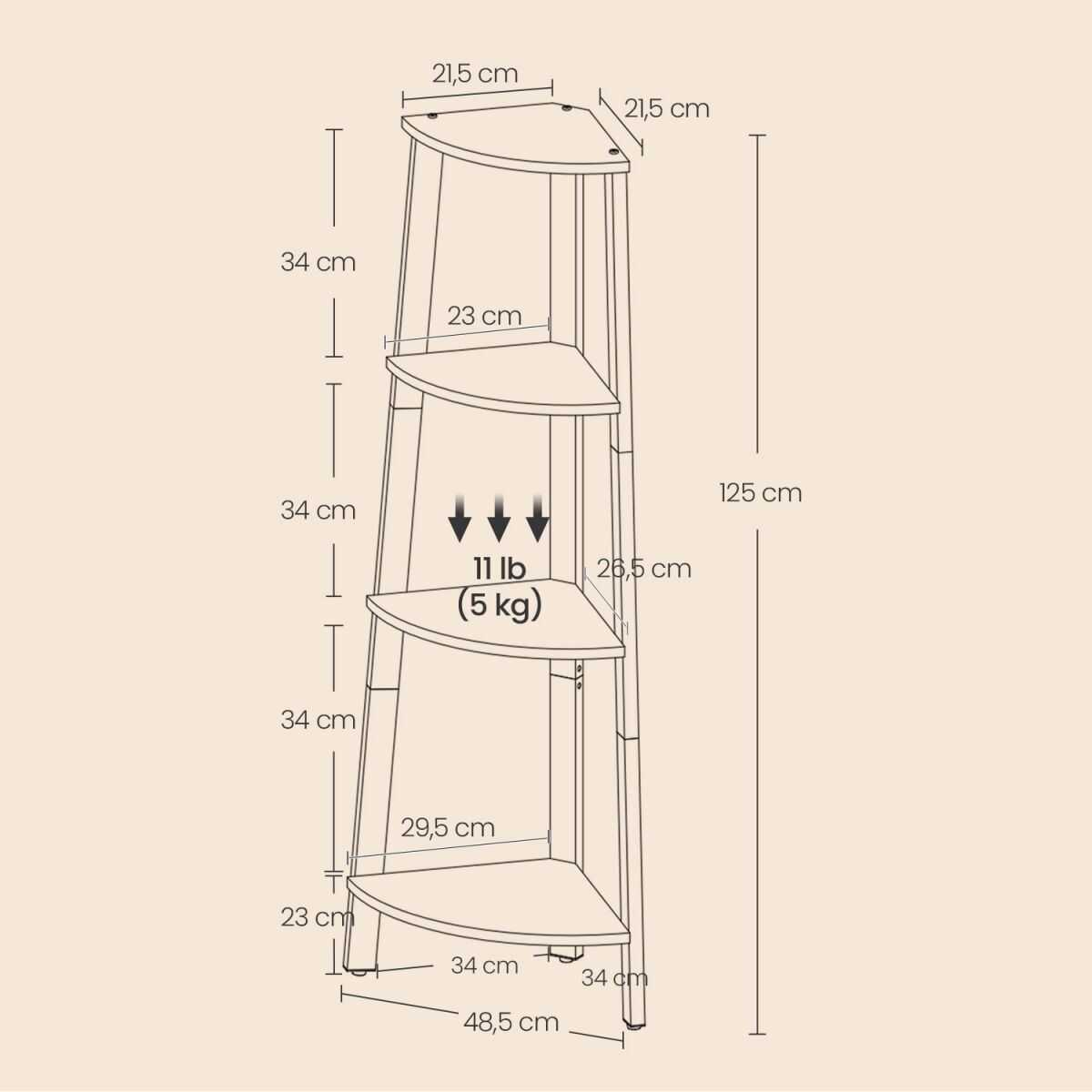 — Максимально допустимая статическая нагрузка на каждый уровень: 5 кг