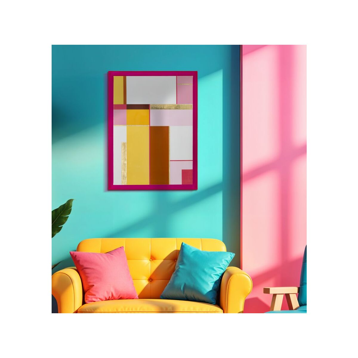 Tugevad jooned, kromaatilised mängud ja kuldsed detailid teevad sellest lõuenditrükisest tõelise keskpunkti interjööris. Ideaalne neile, kes armastavad kaasaegseid dekoratsioone ja tugevat visuaalset mõju.