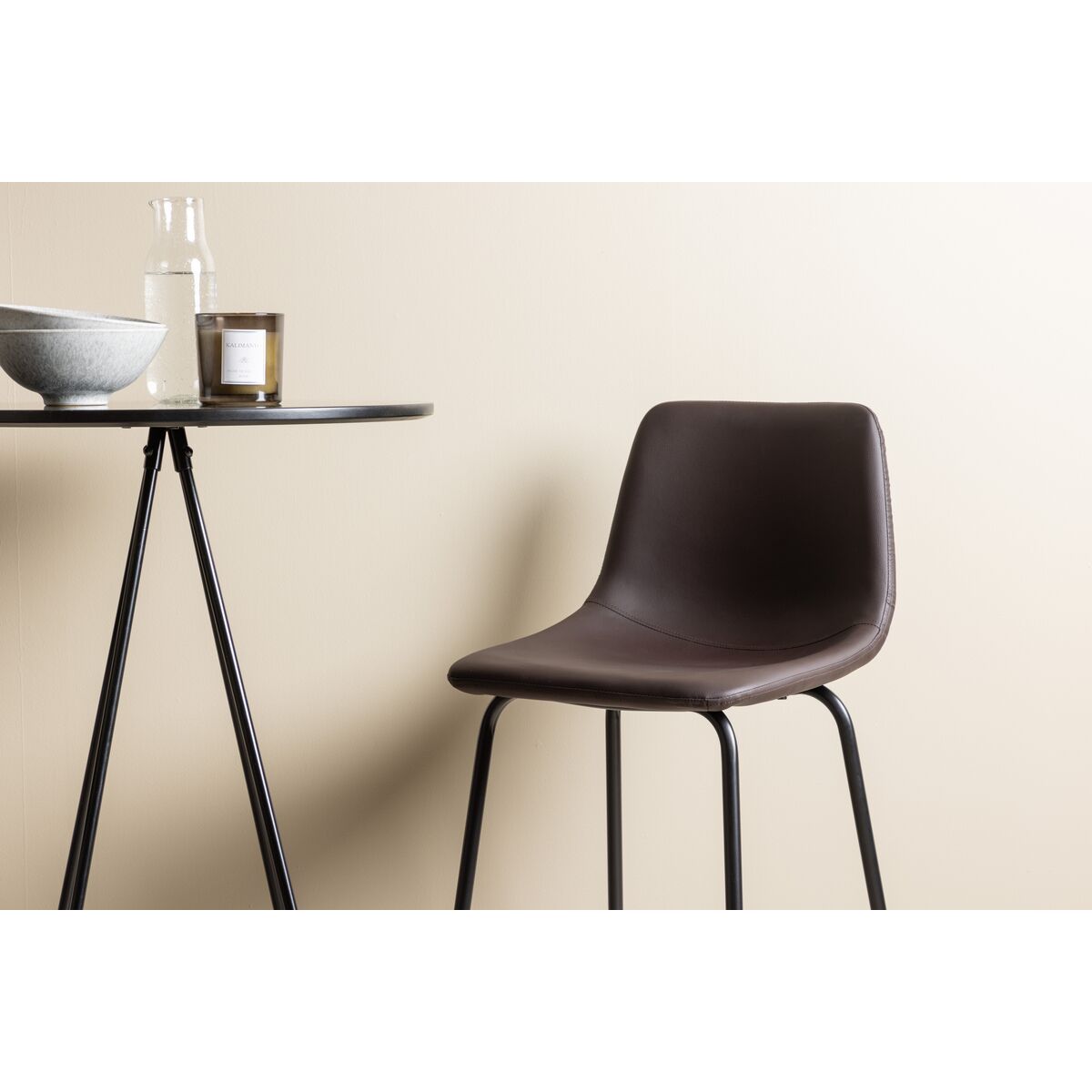Sisusta nutikalt kaasaegsetes, looduslikes toonides! Bistro baarilaud on minimalistliku Skandinaavia disainiga, millel on ümmargune mustast MDF-plaadist vineerpealne laud. Õhuliselt koonuselised lauajalad on kergelt laienevad musta metalli ja integreeritud raamiga, mis toimib jalatoena. Siin on see stiilsas kombinatsioonis pruuni värvi baaripukkidega Alexi seeriast. Disain on läbimõeldud: täielikult polsterdatud tool pruuni polüuretaani naha ja polüesterkangaga ning kitsad musta pulbervärviga kaetud metallist jalad, millel on sisseehitatud jalatugi lisamugavuse tagamiseks. Tere tulemast koju trende kindlalt taluvasse baarikomplekti! Laua mõõtmed: 60 cm.