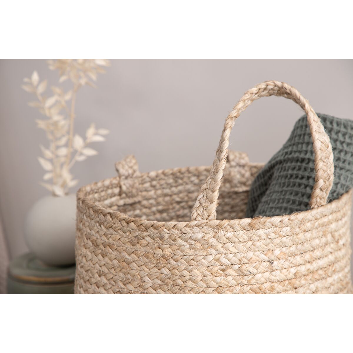 Tutvustame valget Bhopali korvi Ø35—stiilne täiendus teie kodusisustusele, mis ühendab funktsionaalsuse ja esteetilise külgetõmbe. Täielikult 100% vastupidavast džuudist valmistatud elegantne korv on teie parim valik mitmekülgsete hoiustamislahenduste jaoks. Kas otsite võimalust rätikute paigutamiseks vannituppa või soovite eluruumis taimega pilkupüüdva efektiga esineda, see korv on ideaalne valik.