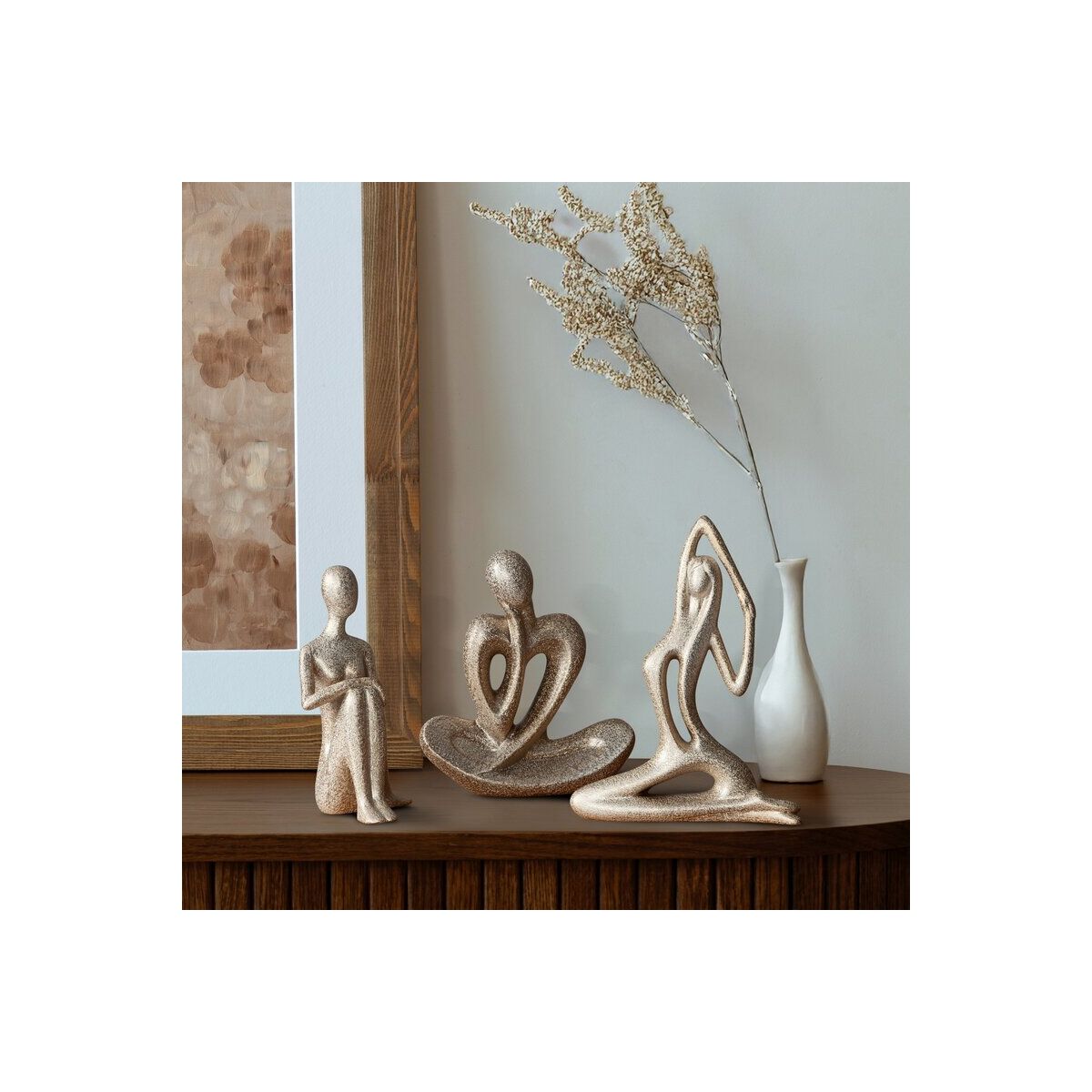 See elegantne dekoratiivne kuju toob kodusesse interjööri peene rafineerituse. Selle šampanjatoon annab luksusliku ilme, samas kui siledad mõõtmed võimaldavad paindlikku paigutust igas ruumis. Täielikult esmaklassilisest keraamilisest savist valmistatud, paistab see teos silma oma kvaliteedi ja rafineeritud esteetikaga, olles ideaalne täiendus, mis täiustab iga ruumi stiili.