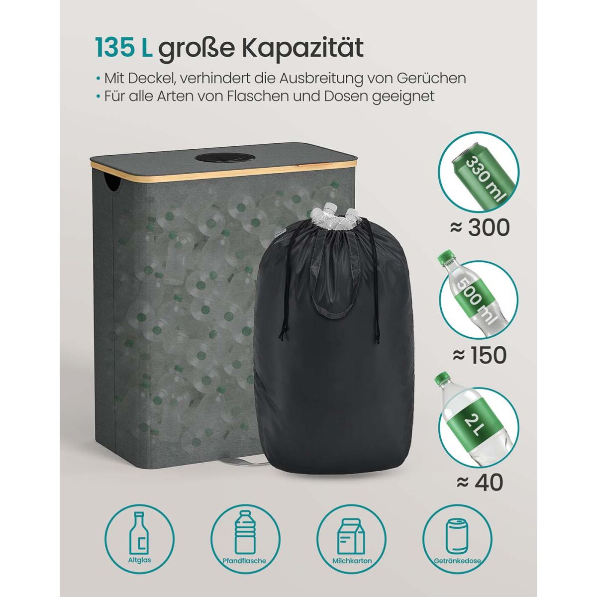 Deposiitpudelite Kogumiskast 135 L Kiltkivihall-Looduslik Beež