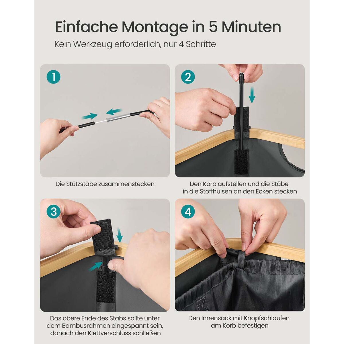 Materjal: Oxford-kangas, polüesterkangas, klaaskiud, bambus, PU-nahk, plast