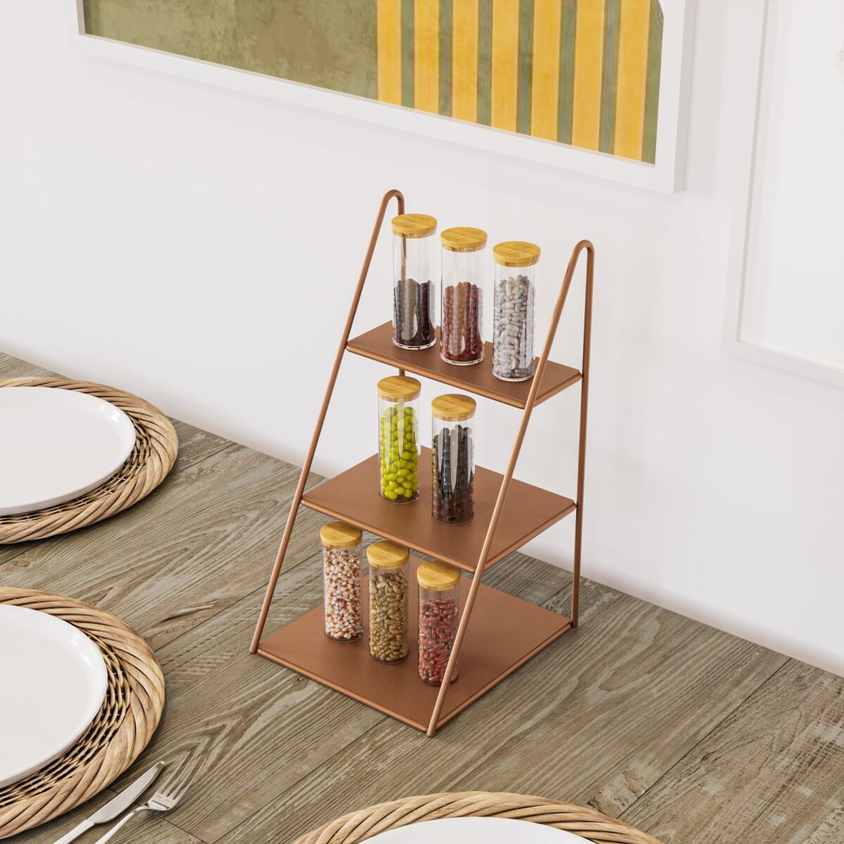 Ajatu välimusega dekoratiivne aksessuaar sobitub vaevata mis tahes interjööri stiiliga, olgu see siis moodne, kaasaegne või traditsiooniline. Selle vaskne värv(id) lisab sooja ja kutsuvat puudutust, luues harmoonilise atmosfääri, mis õhkub võlu ja graatsia.