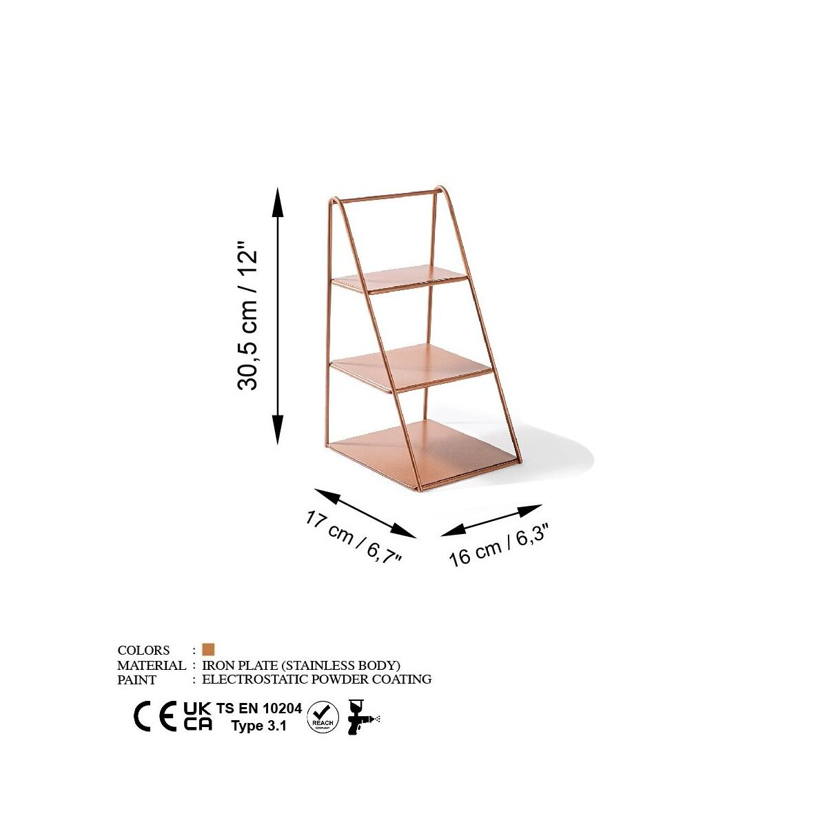 Elegantne Dekoratiivne Metallist Aksessuaar, Vaskvärvi, 16 x 30,5 x 17 cm | 100% Metall, 1,2 mm Paksus | Täiuslik kodu sisustamiseks ja stiilseks aktsendiks