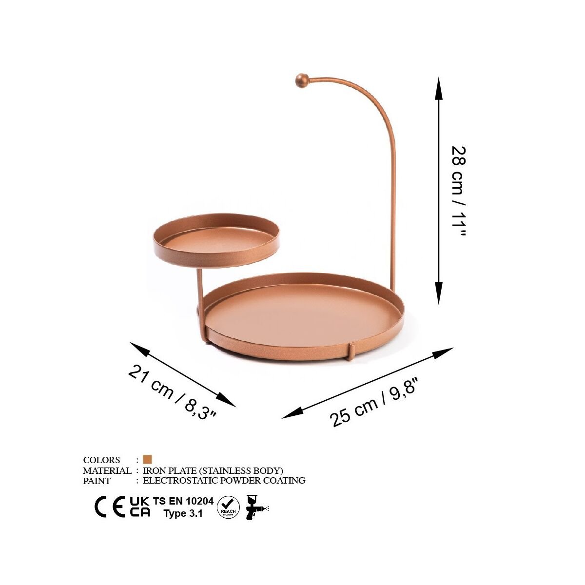 Meie dekoratiivne metallist aksessuaar mitte ainult ei tõsta teie kodu esteetilist atraktiivsust, vaid täidab ka praktilist eesmärki. Tänu oma mõõtmetele 25 cm laius, 28 cm kõrgus ja 21 cm sügavus sobib see ideaalselt igasse ruumi. Kasutage seda väikeste esemete hoidmiseks, värskete lillede väljapanekuks või laske sellel lihtsalt iseseisvalt seista kui silmapaistval esemel.
