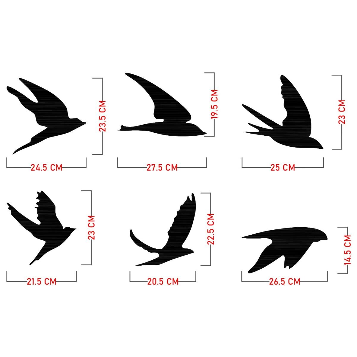 Meie seinaaksessuaar, mis sisaldab kaunilt kujundatud linnu siluette, toob looduse võlu teie eluruumi. Iga lind on hoolikalt kujundatud, et tabada nende graatsilise lennu olemust, luues lummava visuaalse väljapaneku, mis jätab teid imetlema.