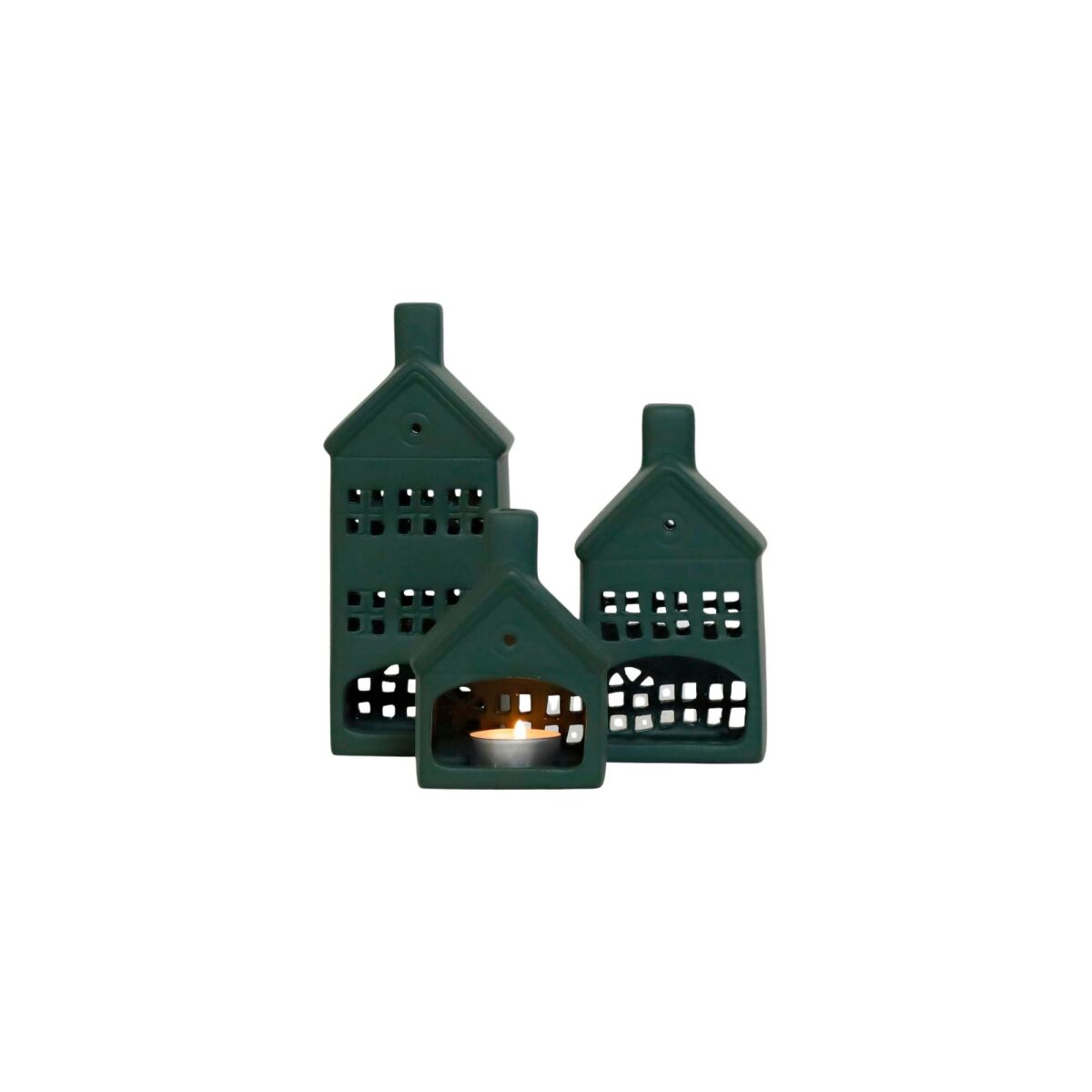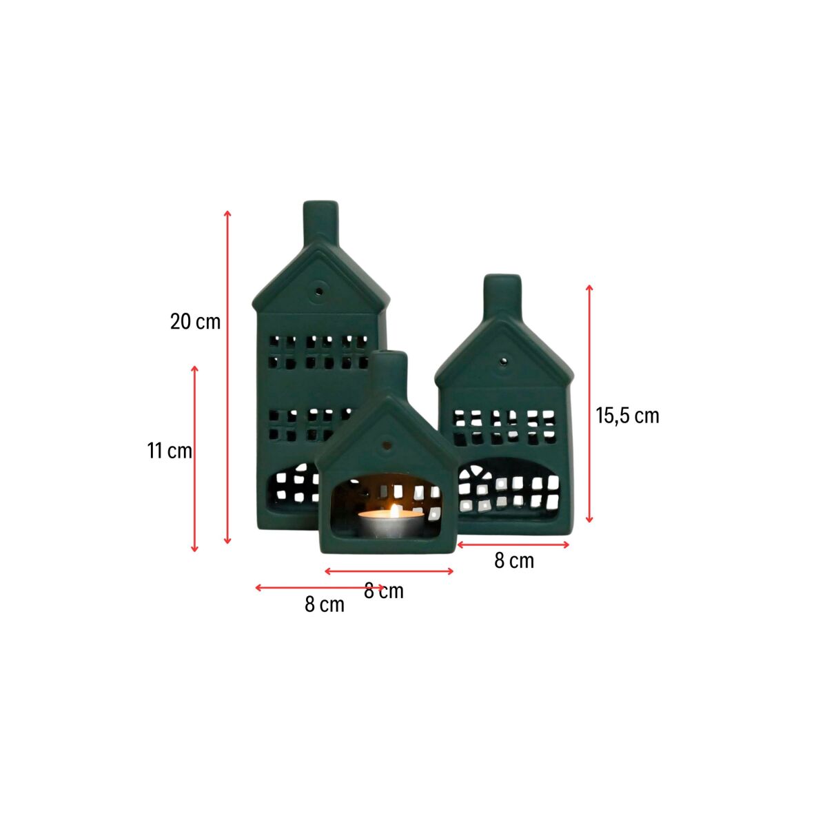 Elegantne roheline dekoratiivsete esemete komplekt (3 osa) | 100% keraamika | Suurused: 8×6,5x11cm, 8×6,5×15,5cm, 8×6,5x20cm | Ideaalne kodu kaunistamiseks ja aktsentdetailidena