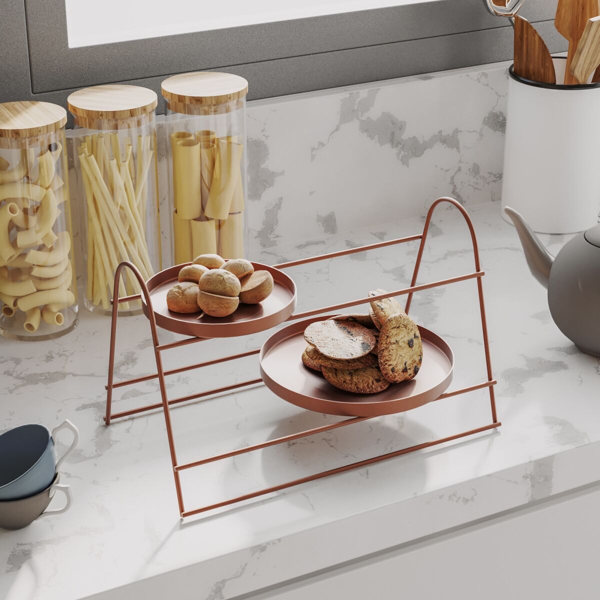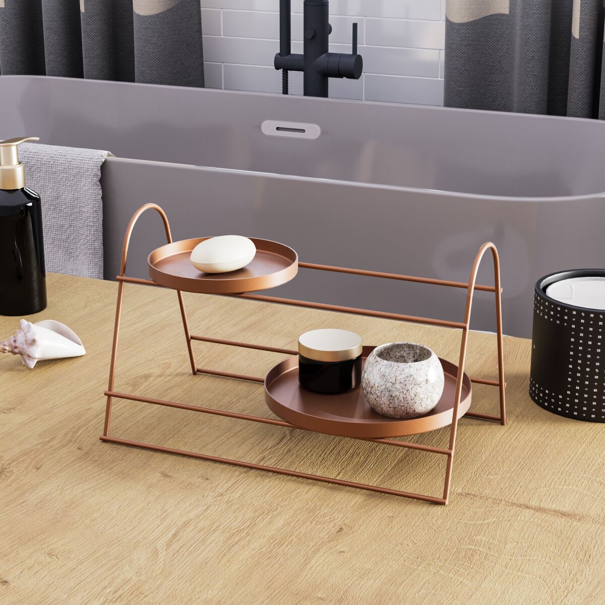 Meie dekoratiivne metallist aksessuaar, mille laius on 35 cm, kõrgus 22 cm ja sügavus 21 cm, on ideaalne suurus pilkupüüdva väljapaneku loomiseks. Suur kandik läbimõõduga 20 cm ja väike kandik läbimõõduga 15 cm pakuvad piisavalt ruumi, et esitleda oma lemmikkommeteid, küünlaid või väikseid taimi.