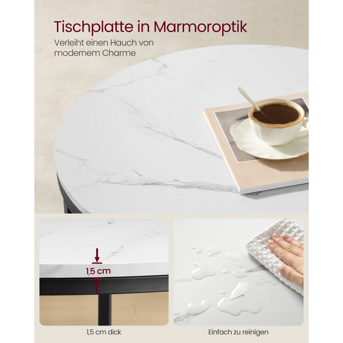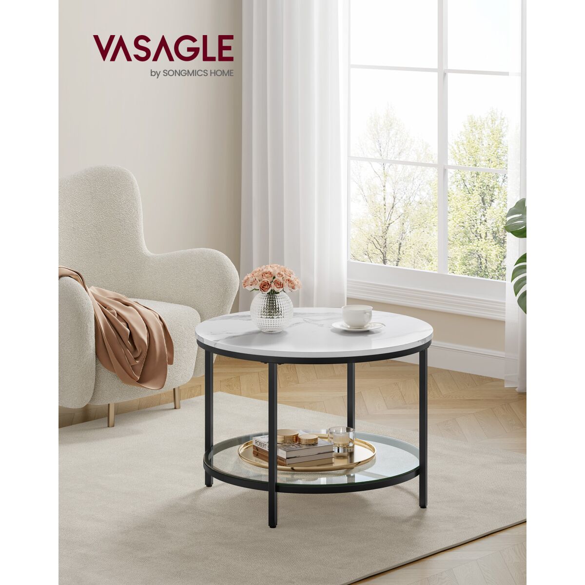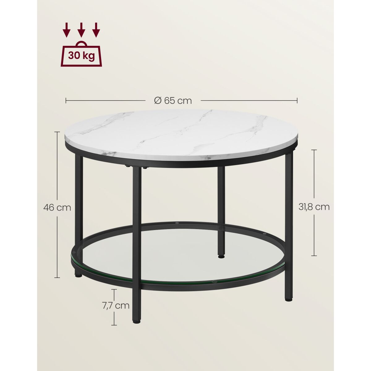 Elutoalaua kohvilaud, diivanilaud, klaasist pealispinnaga, avara panipaigaga, lihtne kokku panna, marmorvalge-tindimust