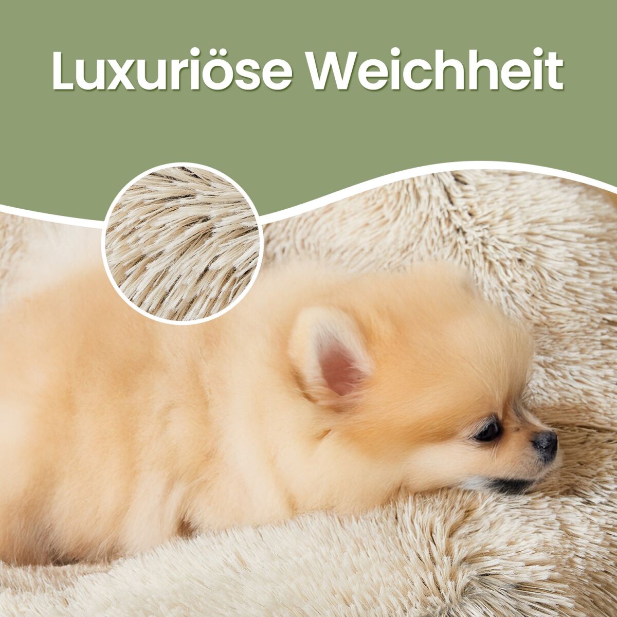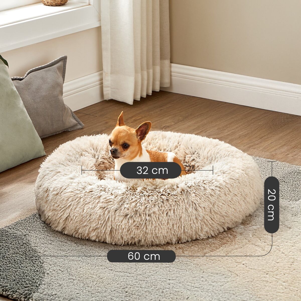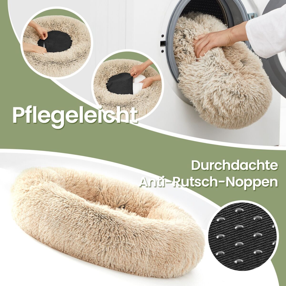 Koera- ja Kassipesa, Donutsipadi, Pestav, Eemaldatav Keskmine Polsterdus, Pikk Plüüs, 60 cm Läbimõõt, Ombré-Khaki