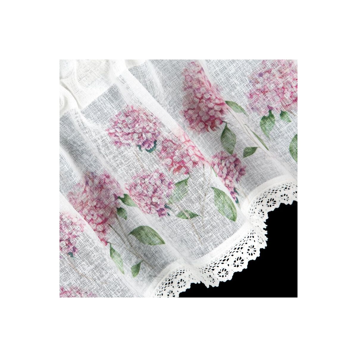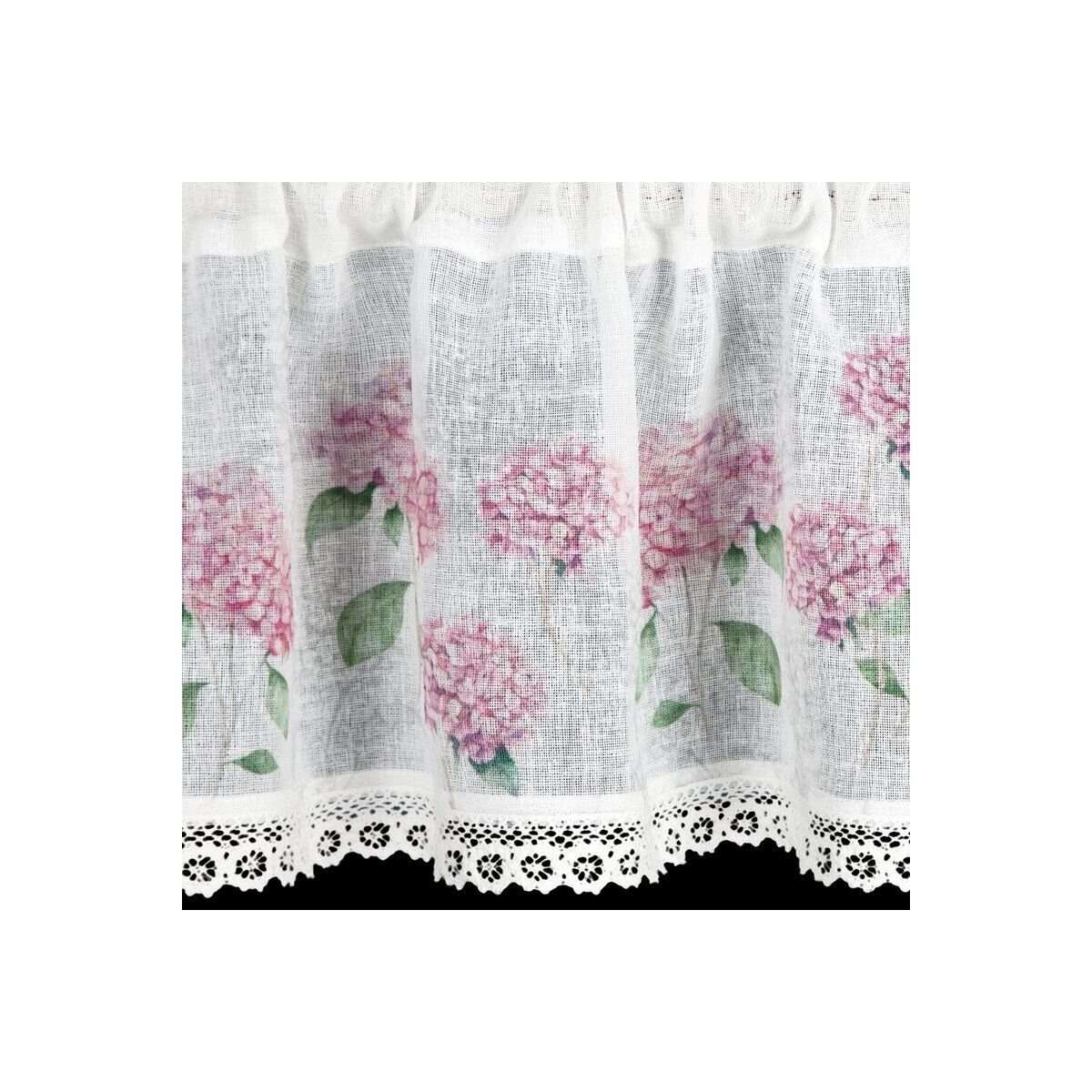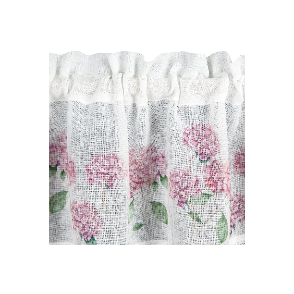 See läbipaistev kardin ühendab õrna pitskaunistuse ja stiilse trükimustri, pakkudes köögisisustusele elegantset puudutust. Valmistatud 100% polüestrist, see tagab vastupidavuse ning on kergesti hooldatav. Karge valge värv sobitub erinevate sisekujundusstiilidega, täiustades ruumi elegantsust. Ideaalne, et lisada akendele šikk ja õhuline ilme.