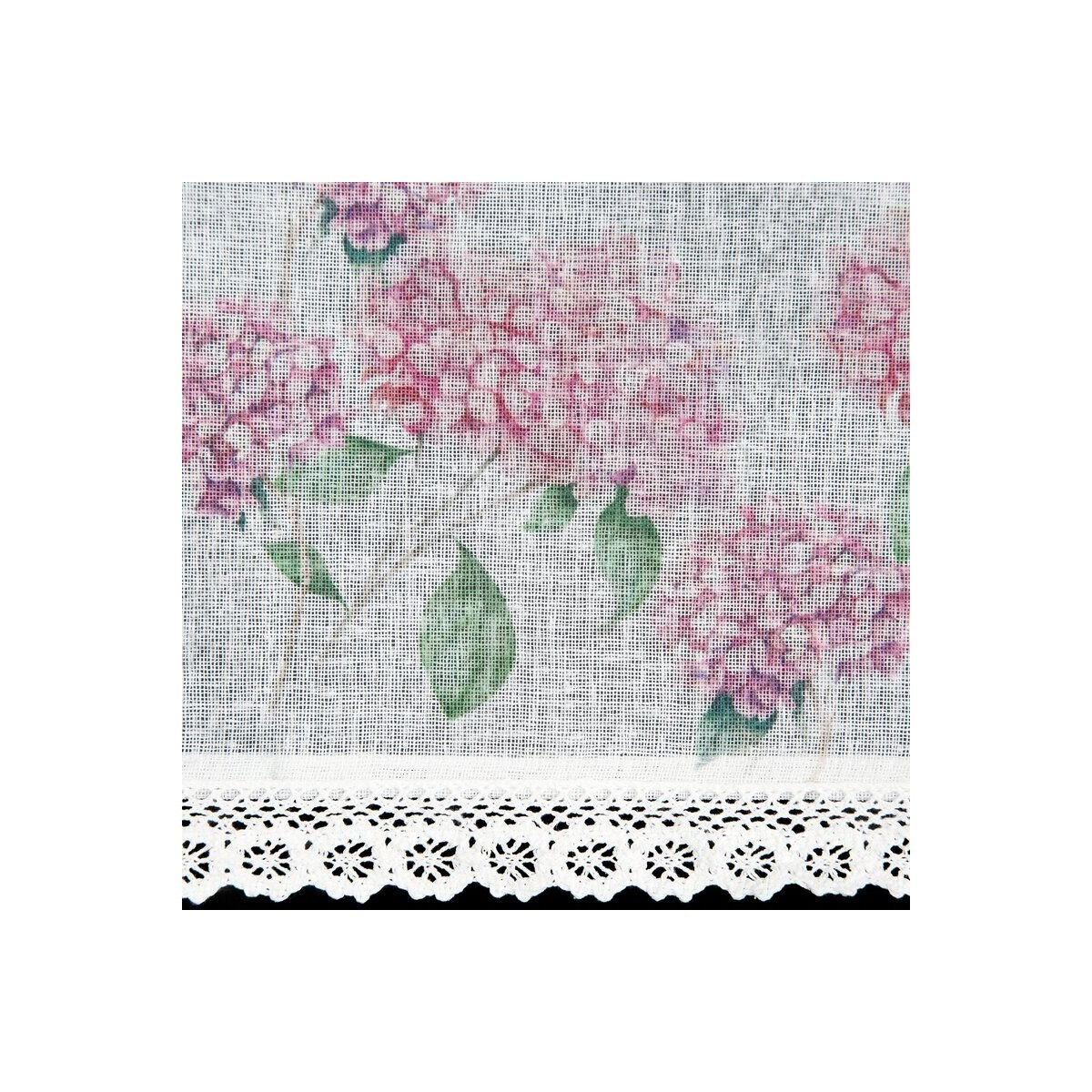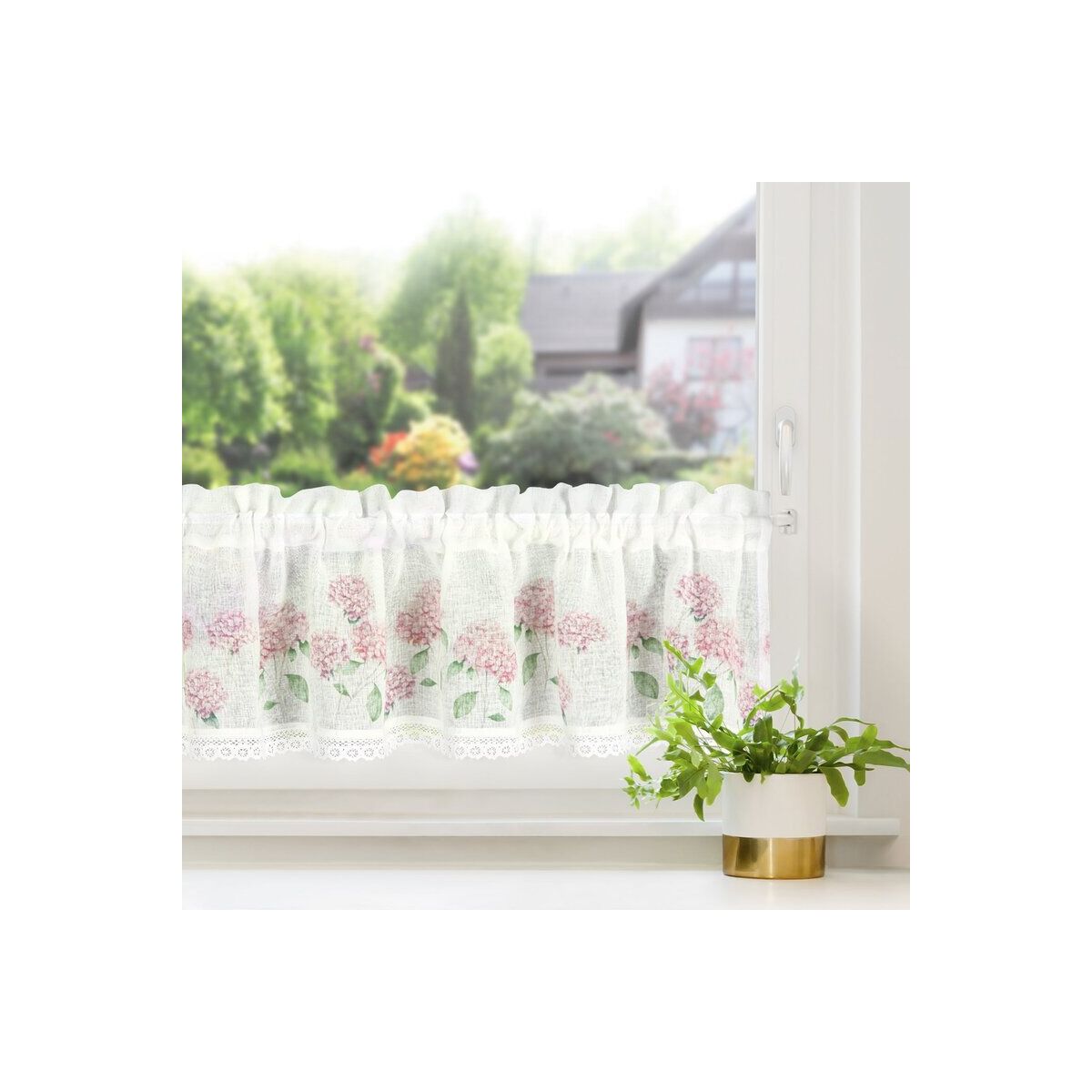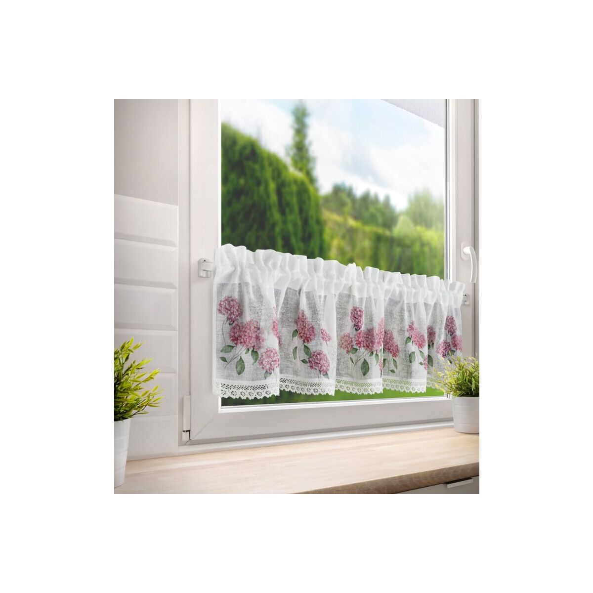 See läbipaistev kardin ühendab õrna pitskaunistuse ja stiilse trükimustri, pakkudes köögisisustusele elegantset puudutust. Valmistatud 100% polüestrist, see tagab vastupidavuse ning on kergesti hooldatav. Karge valge värv sobitub erinevate sisekujundusstiilidega, täiustades ruumi elegantsust. Ideaalne, et lisada akendele šikk ja õhuline ilme.