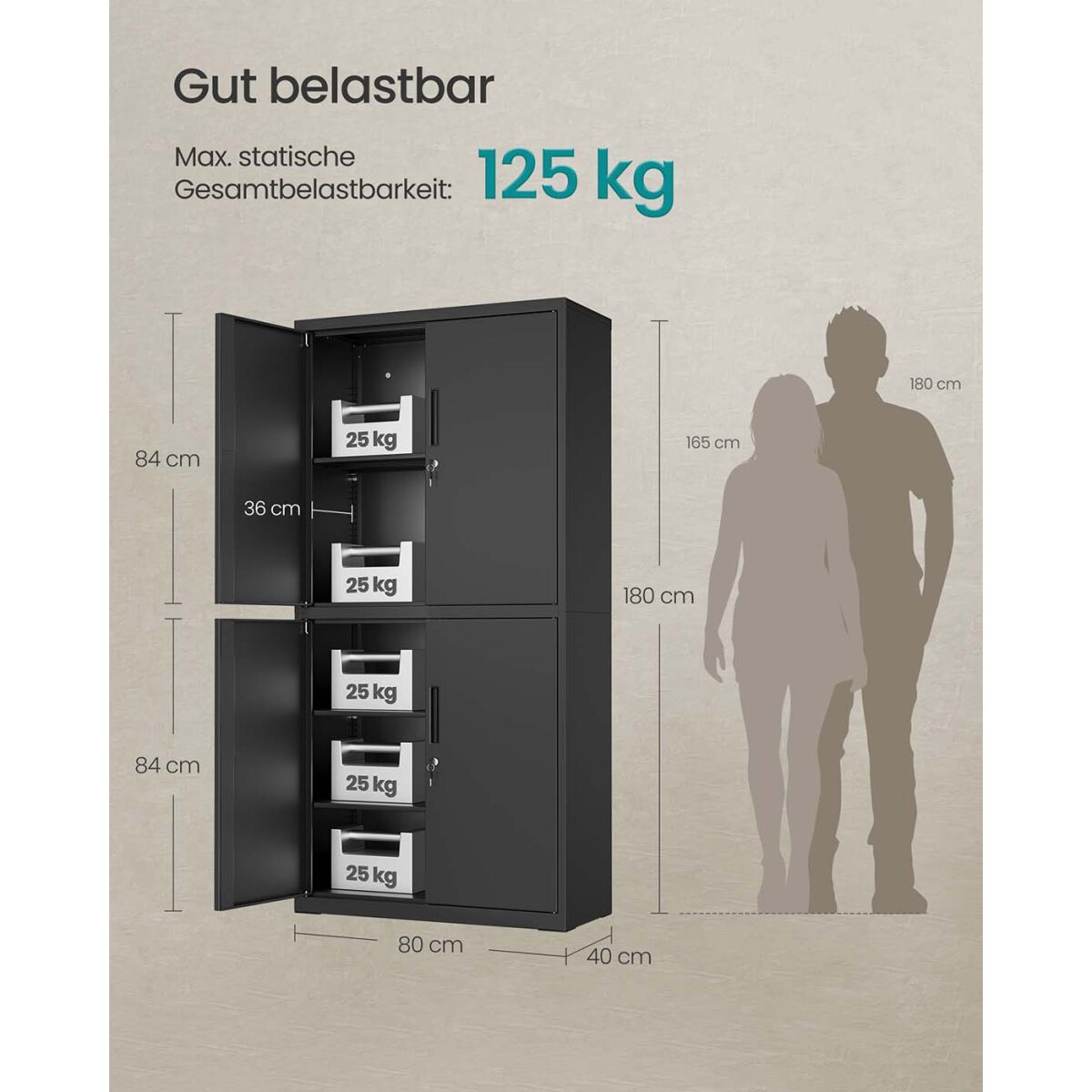 SONGMICS kaustakapp, mitmeotstarbeline hoiukapp, kontorikapp, millel on 4 ust ja 5 sektsiooni, 40 x 80 x 180 cm, 2 lukku, reguleeritavad riiulid, terasest hoiukapp, matt must.