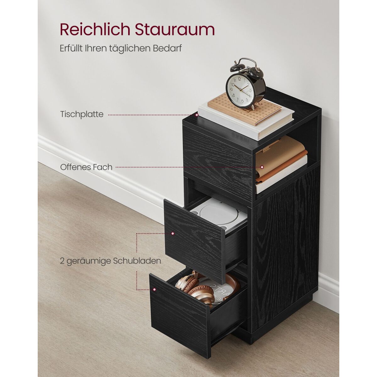 Kogege täiuslikku funktsionaalsuse ja elegantsi koos VASAGLE öökapiga. Selle mitmekülgne disain võimaldab paigaldada avatud riiuli kas vasakule või paremale, muutes selle ideaalseks valikuks igasse magamis- või elutoa keskkonda. Valmistatud kvaliteetsest puidupõhjaliste paneelide ja MDF-materjaliga, pakub see toode vastupidavust, ohverdamata stiili. Klanitud eebenimust viimistlus lisab rafineeritust, täiendades igat sisekujundust. Kompaktne suurus muudab selle ideaalseks väiksematesse ruumidesse, pakkudes samas rohket hoiuruumi kahe avara sahtliga. Valmistatud kõrgekvaliteedilistest materjalidest, teeb see öökapp muljetavaldavaks oma tugeva konstruktsiooni ja tasakaalustatud esteetikaga, olles väärtuslik lisa teie koju.