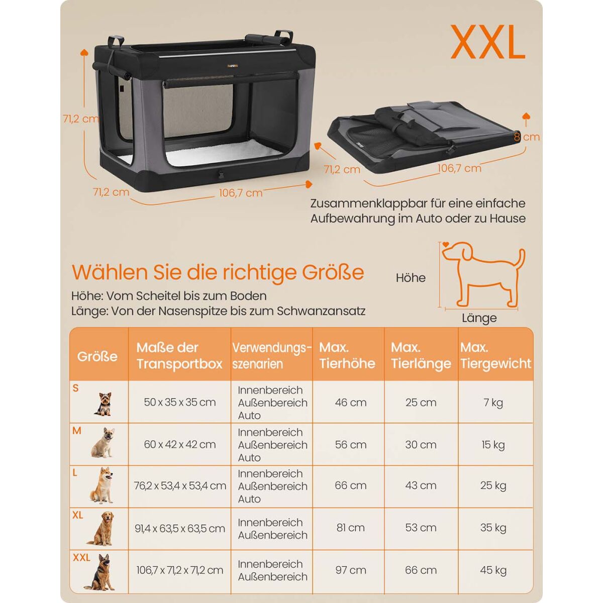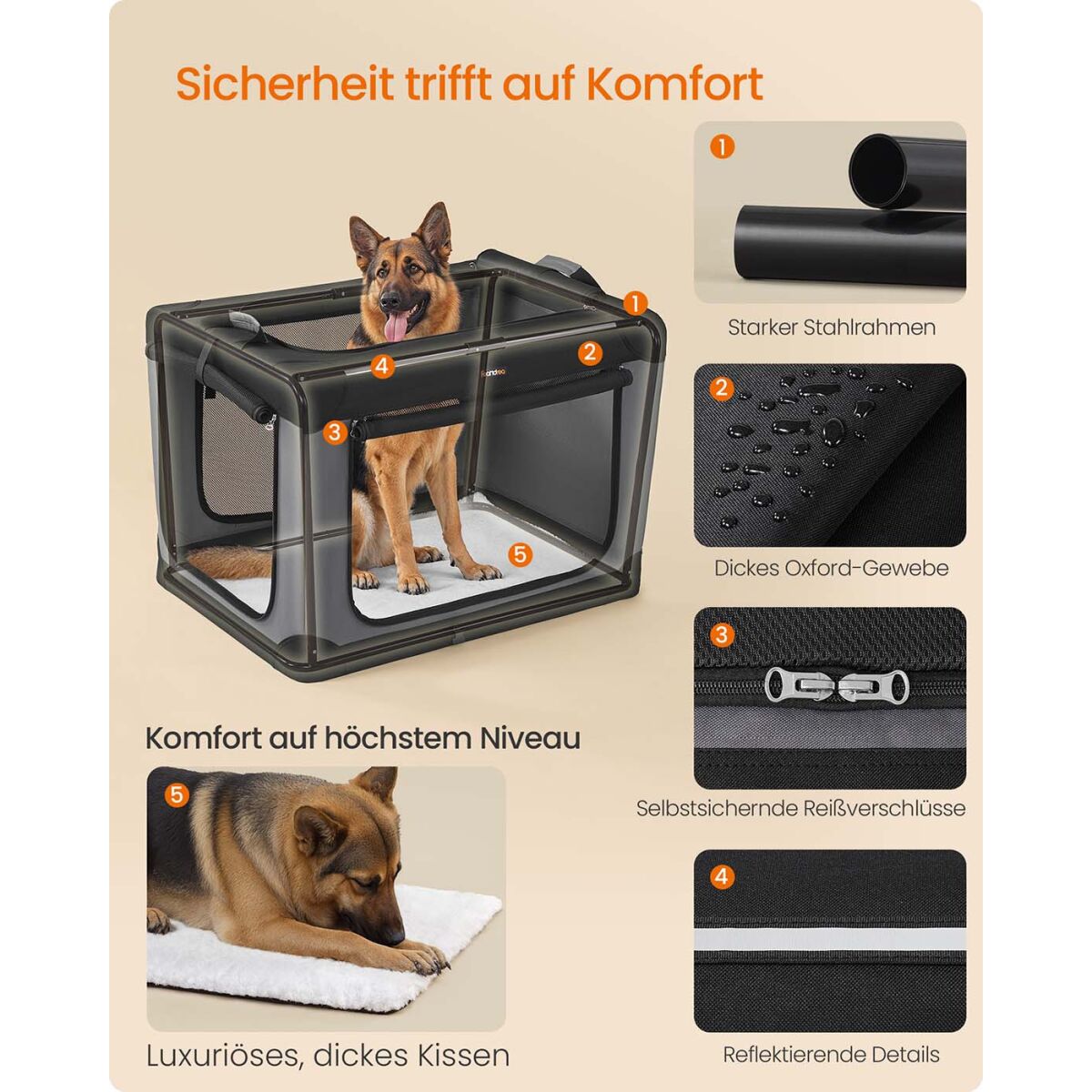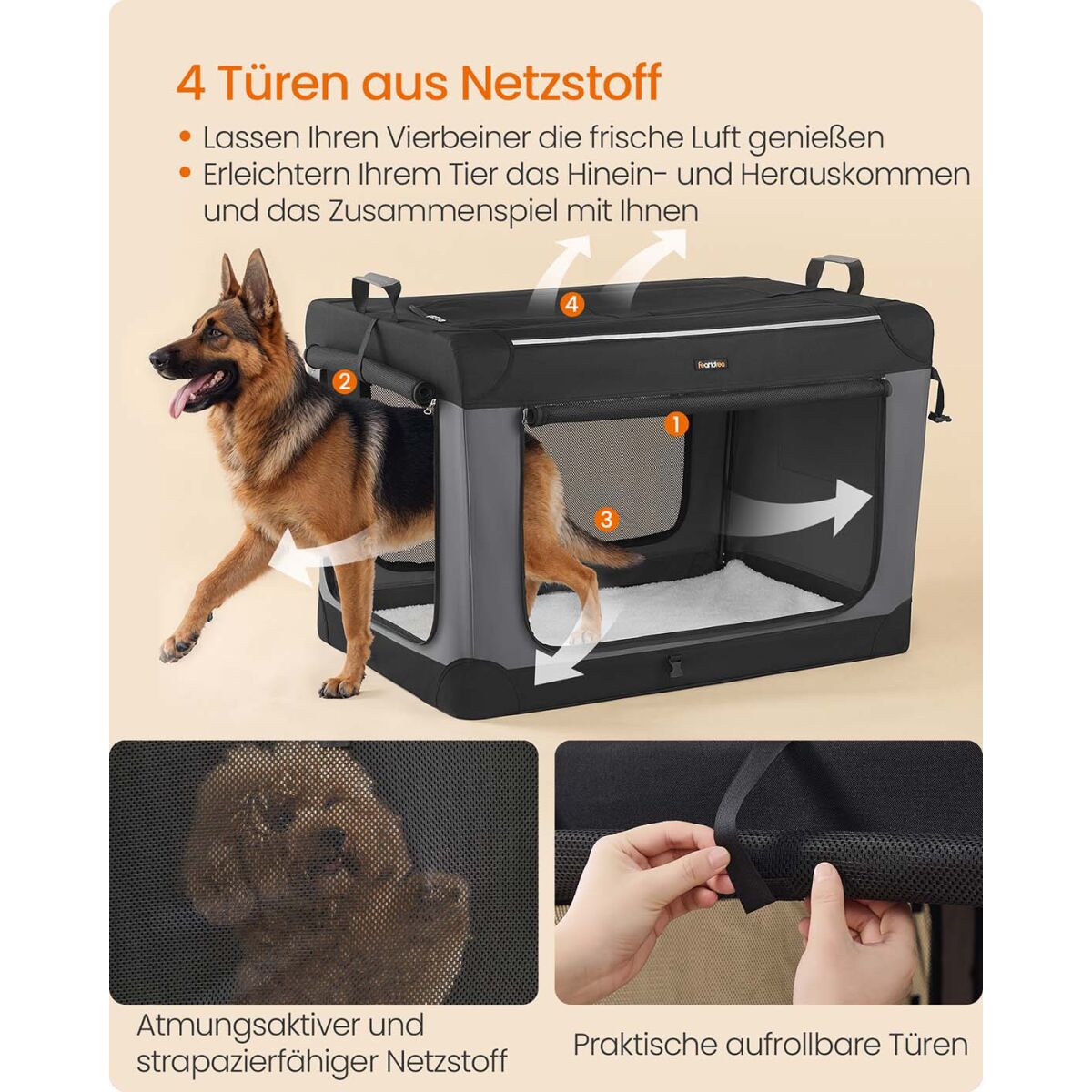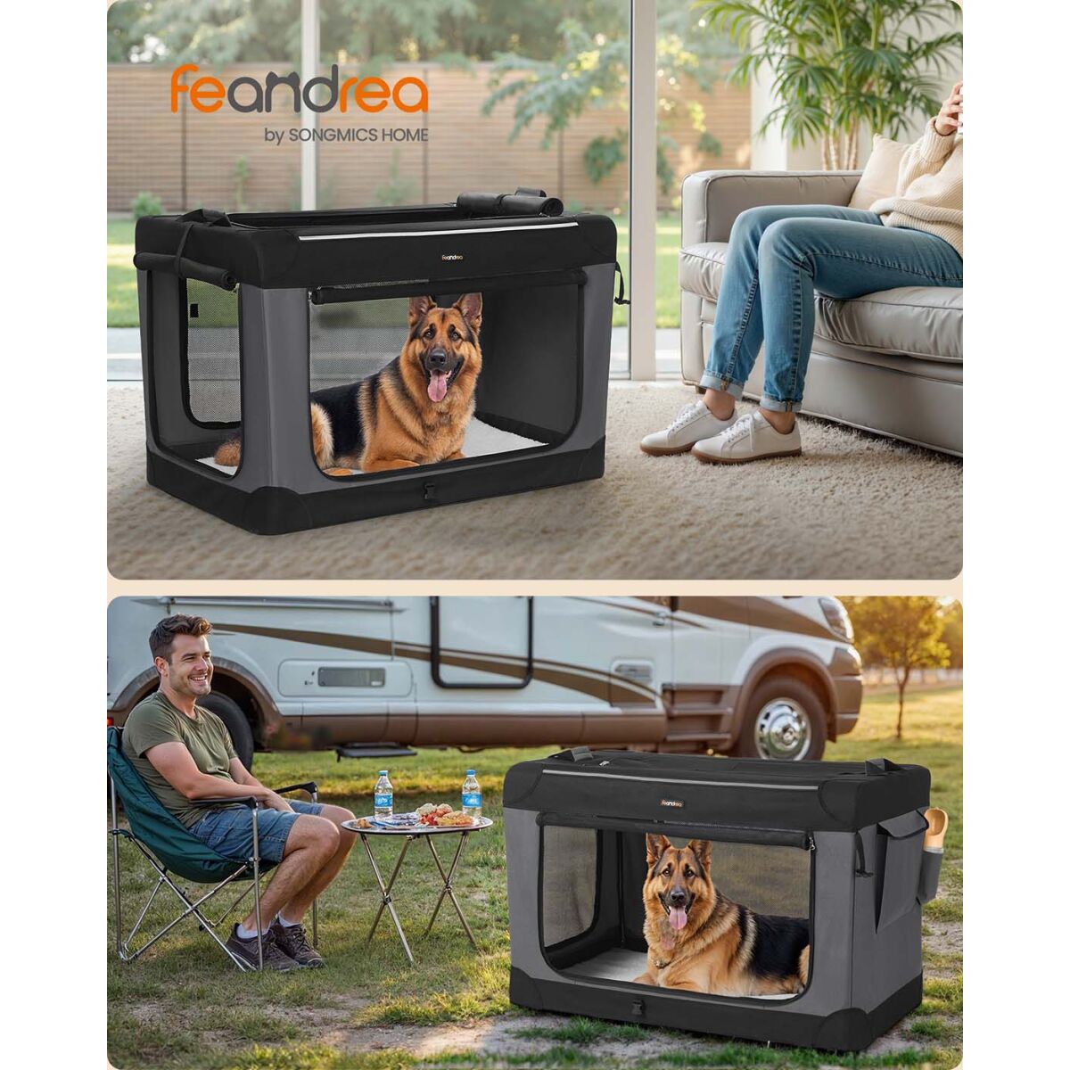 Feandrea kokkupandav koertepuur, 60 cm kandekott väikestele koertele, koerte reisikott, Oxfordi kangast, nelja võrguksestega, sangadega, taskutega toidu ja veepudeli jaoks, tume must.