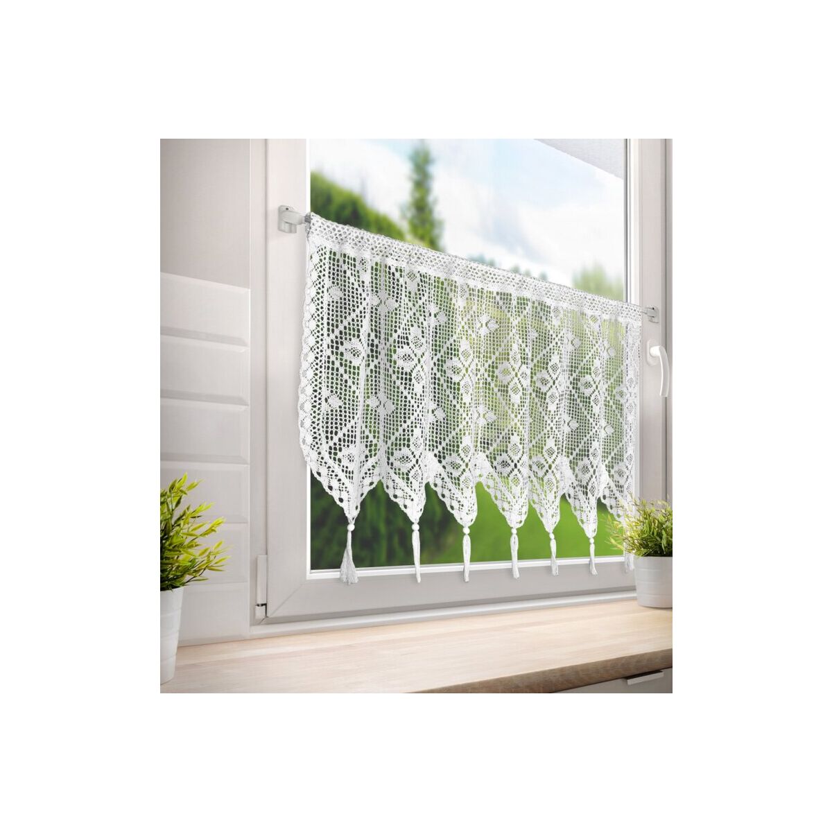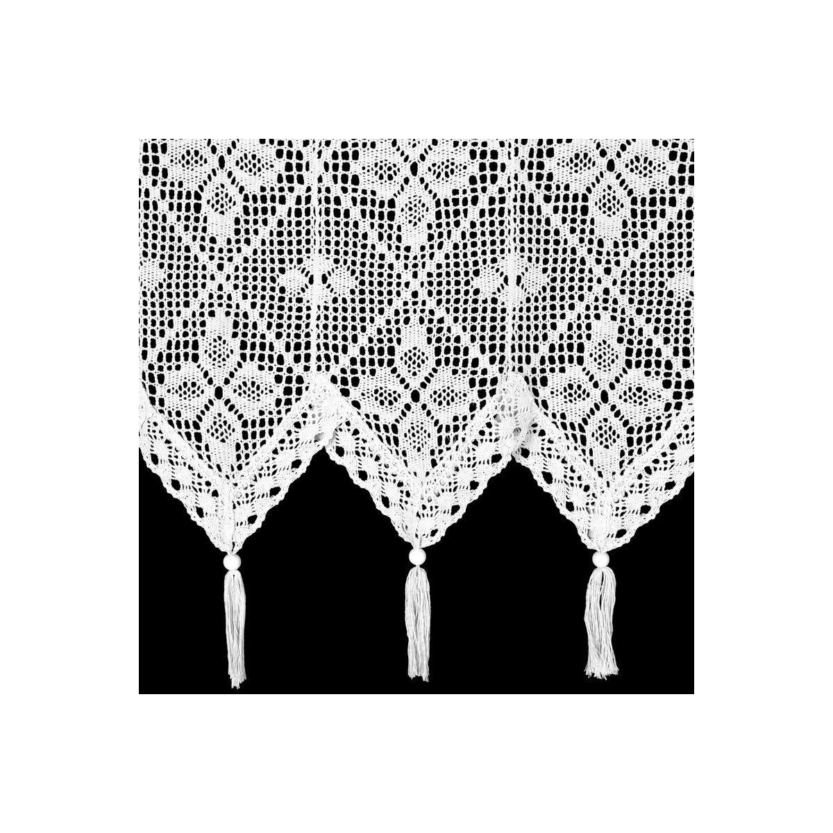 MARTHA valmis kardin kaunistab Teie kodu keerulise pitsilise lillemustriga, lisades ruumile elegantsi ja võlu. Kardina laius on 150 cm ja pikkus 60 cm, mis sobib ideaalselt köögiakendele või teistesse väiksematesse ruumidesse, kuhu soovite lisada peensust. Kerge ja puhas valge toon võimaldab seda sobitada erinevatesse sisustusstiilidesse, alates modernsest kuni traditsiooniliseni.