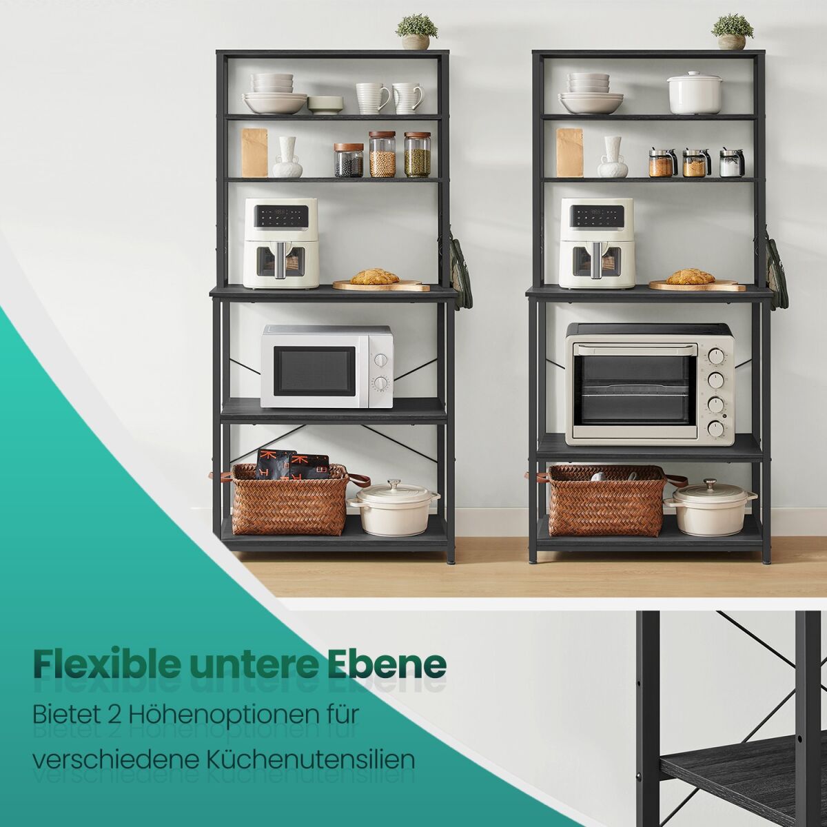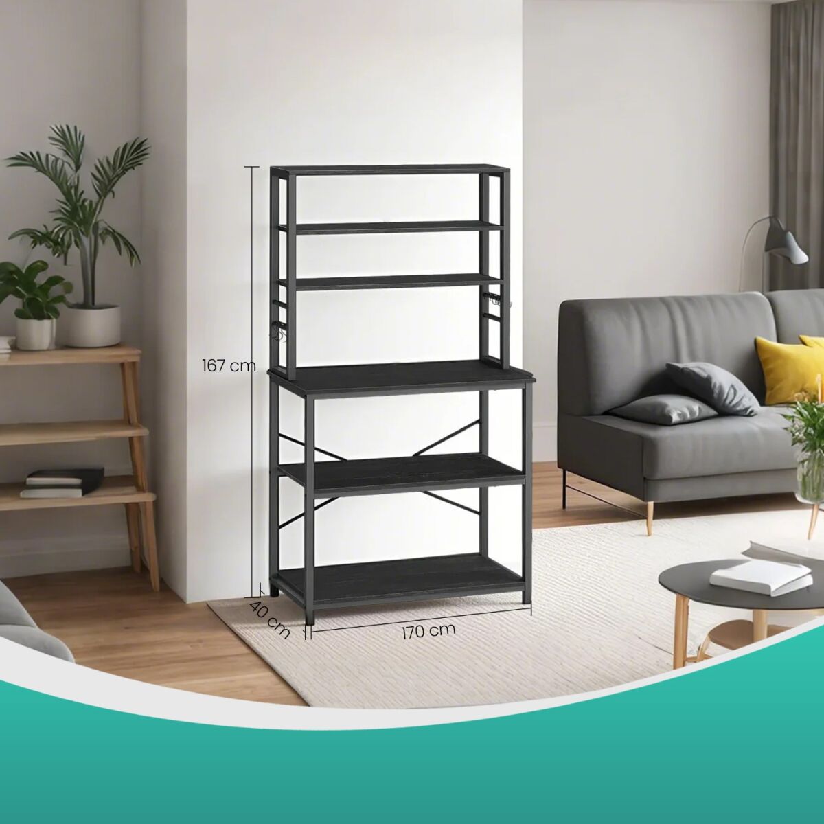 VASAGLE köögiriiul ühendab endas nii vastupidavuse kui ka stiili, mille tagab industriaalne disain ja tugev metallraam. Rikkalikud hoiuvõimalused ja multifunktsionaalsed omadused, nagu 6 konksu ja reguleeritavad riiulid, teevad sellest ideaalse lahenduse köögitarvikute organiseerimiseks või mikrolaineahju toetamiseks. Vintage pruun ja must annavad sellele peenelt elegantse ilme, sobitudes kaunilt erinevate köögisisustustega.