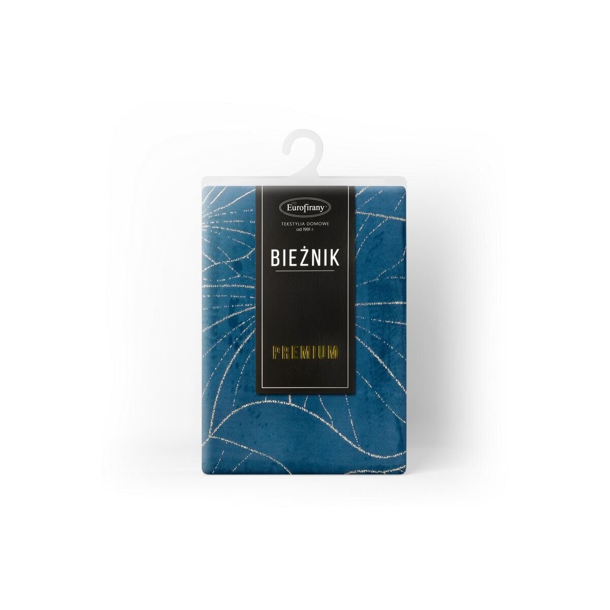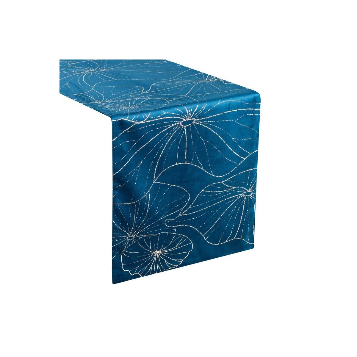 Sametine laudlina, millele on trükitud šampanja muster. Laius: 35 cm, pikkus: 140 cm, värv: tumesinine, kaal: 250 GSM, koostis: 100% polüester.