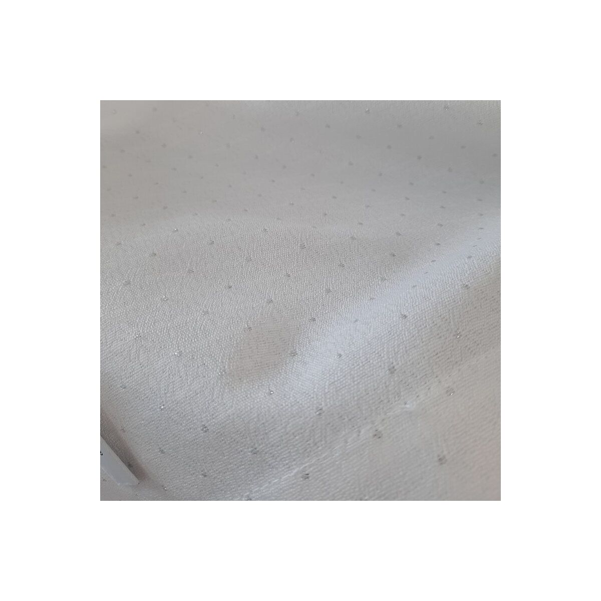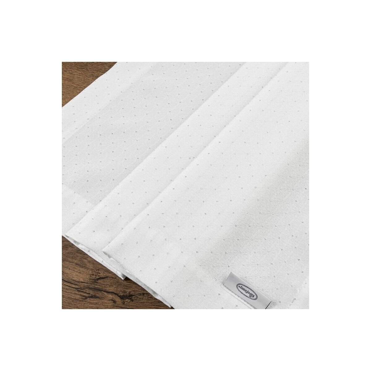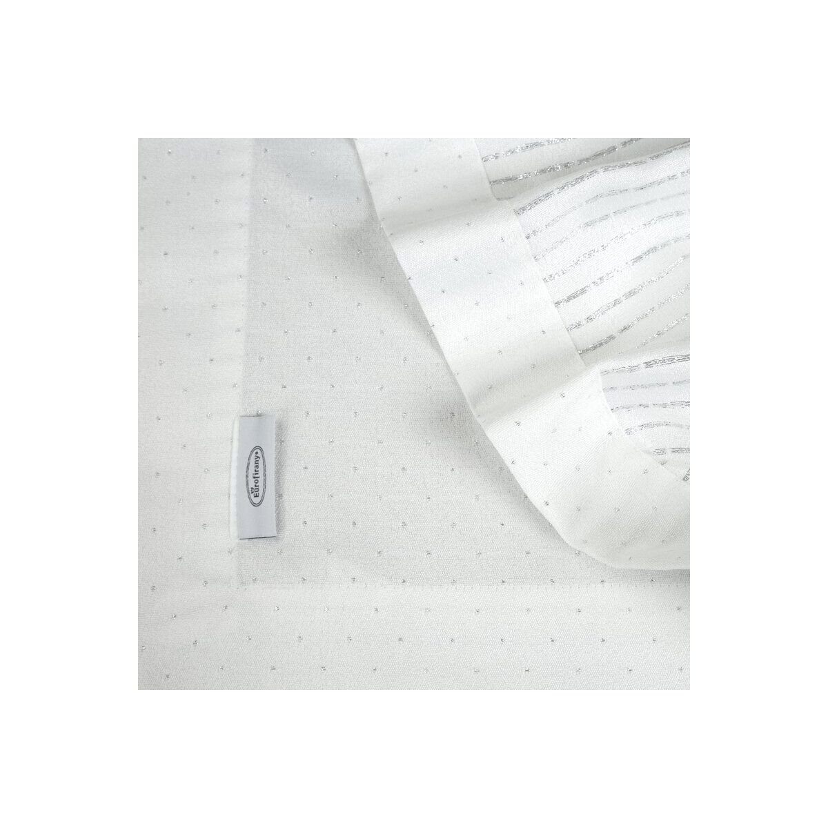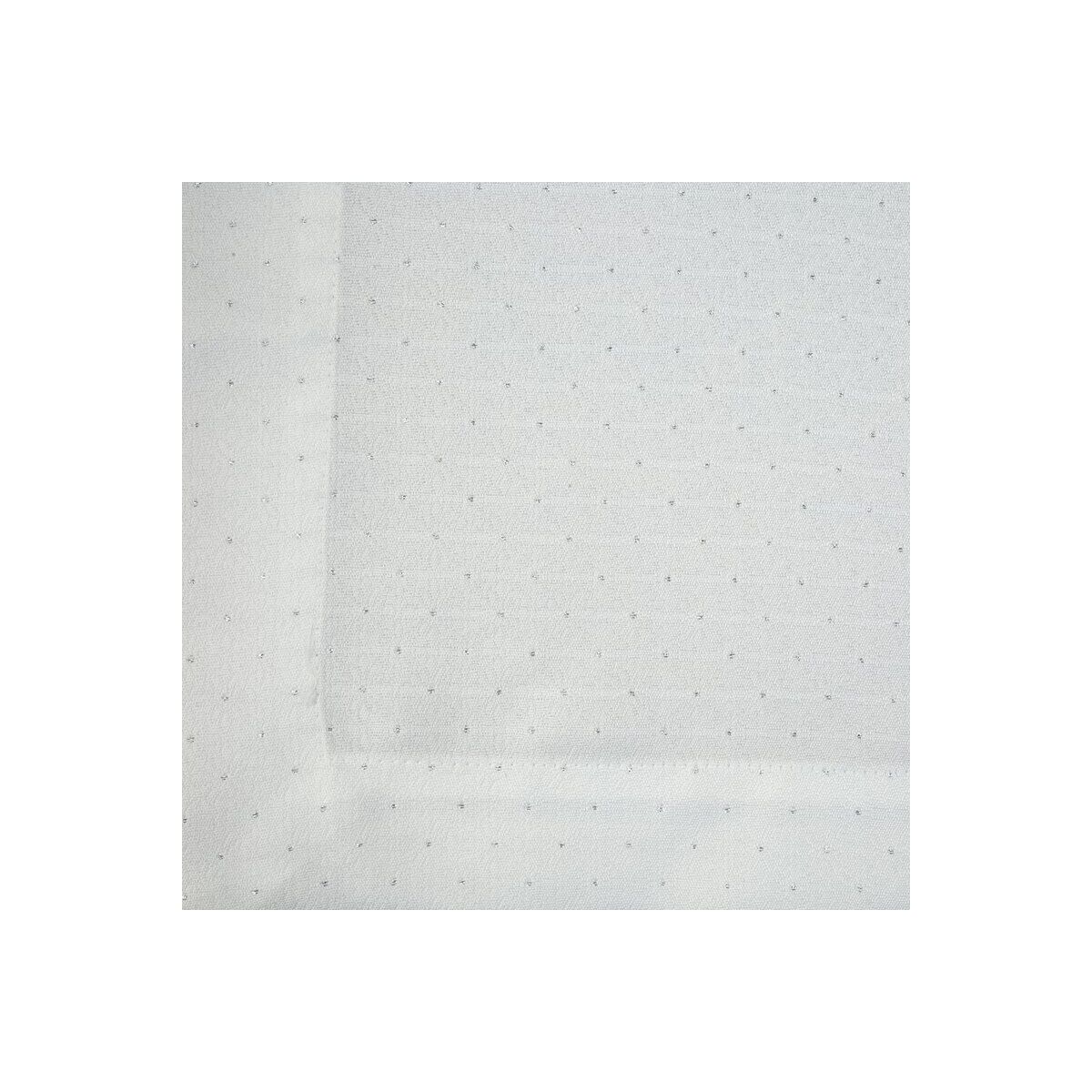 Elegantselt kaunistatud laudlina, millele lisavad sära hõbedased niidid. Mõõtmed: 85 cm lai ja pikk. Värv: valge. Valmistatud 100% polüestrist, kanga kaal 160 GSM. See toode ühendab endas elegantsi ja vastupidavuse, muutes selle ideaalseks valikuks teie söögilaua stiili täiendamiseks.