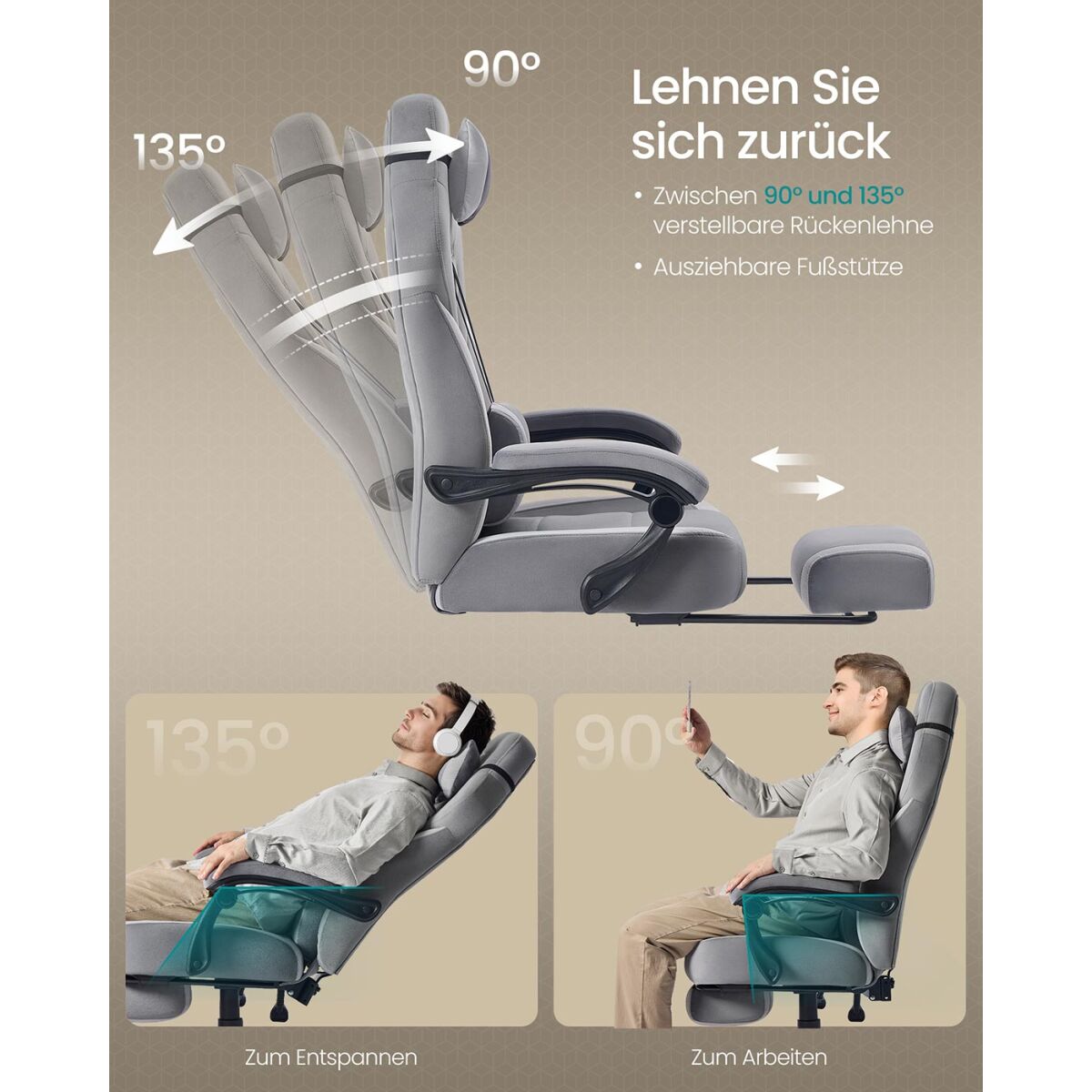 Mänguritool jalatoe ja reguleeritava peatoega Tuhkhall-Kuuhall