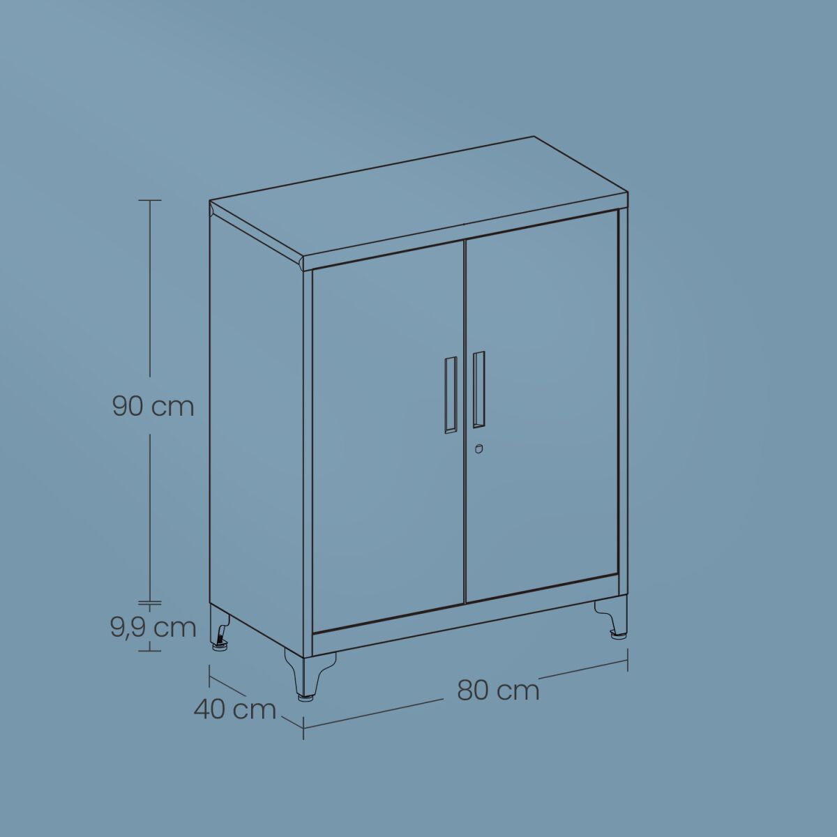 – Suurus (ilma jalgadeta): 40 x 80 x 90 cm (S x L x K)