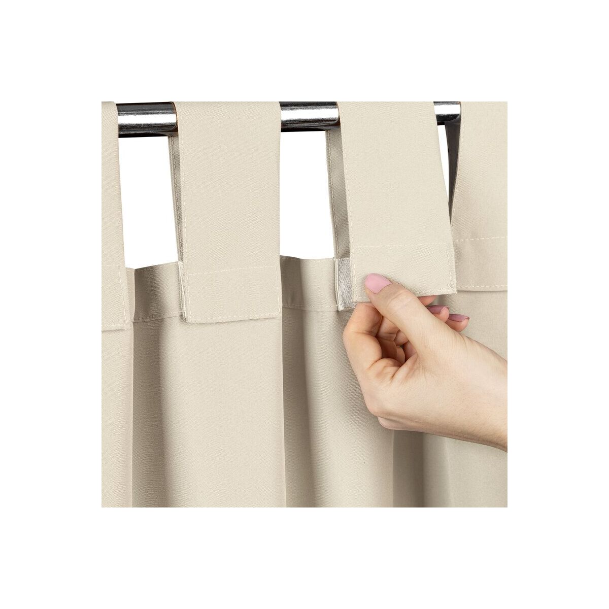 See kõrgekvaliteediline ja vastupidav õuekardin lisab elegantsi igasse aeda või terrassiruumi. Mugava aasa ja takjapaela süsteemiga disain tagab lihtsa paigaldamise ja kindla paigalduse. Veekindla omadusega kardin pakub suurepärast vastupidavust ilmastikutingimustele, olles praktiline valik välitingimustes kasutamiseks. Stiilne helebeež toon täiendab erinevaid sisekujundusstiile, tagades samas privaatsuse ja päikese kaitse.