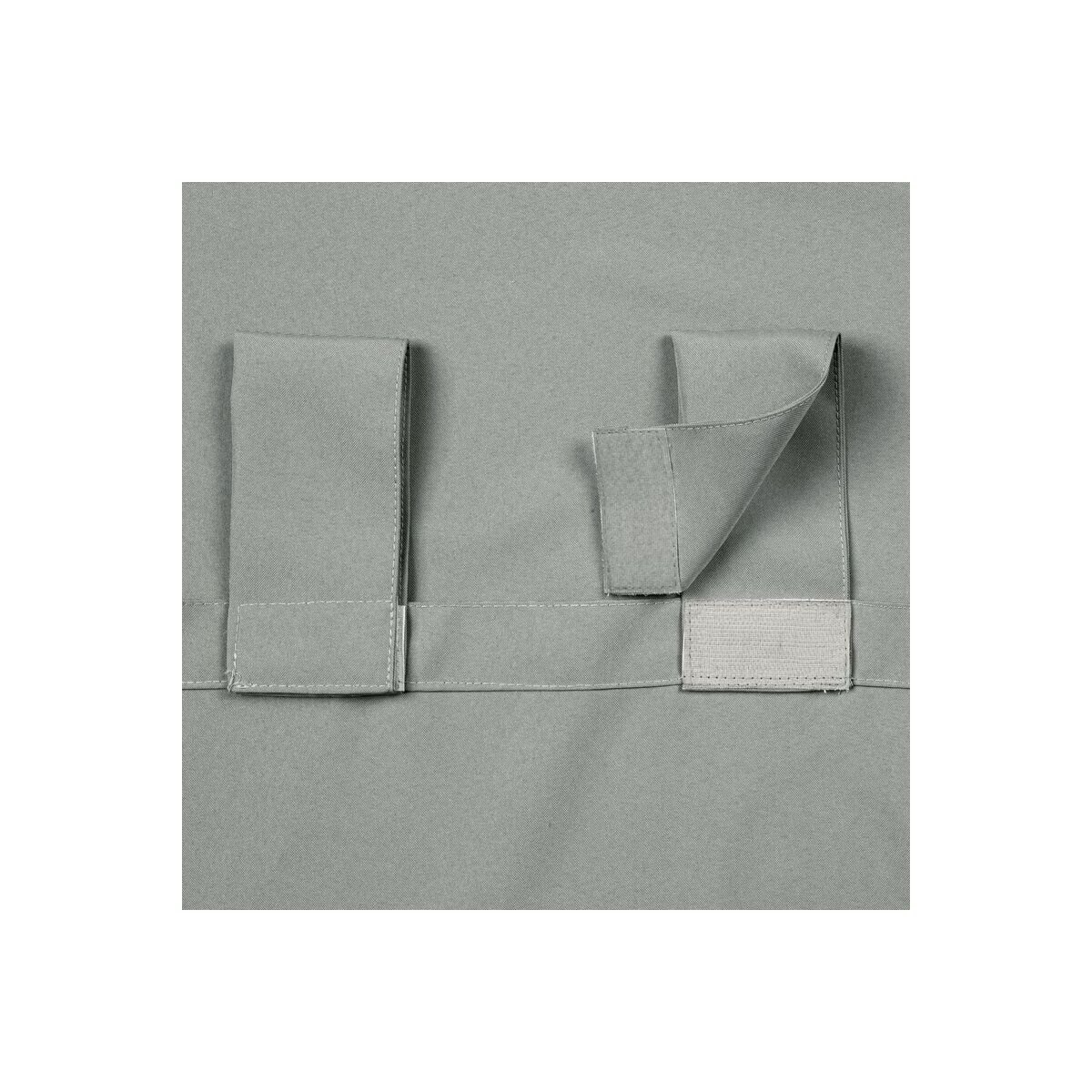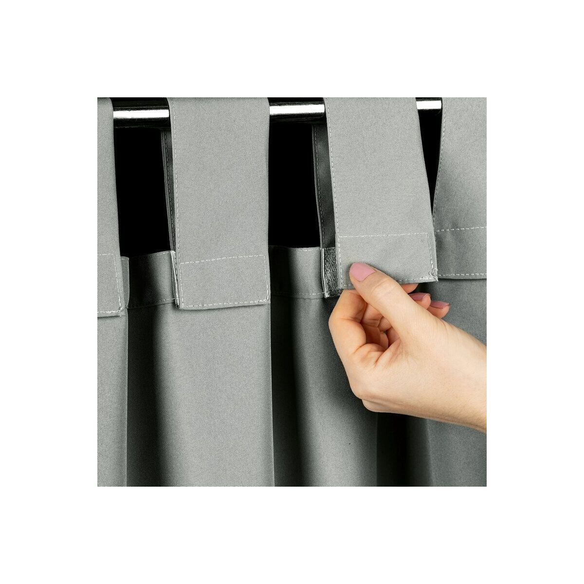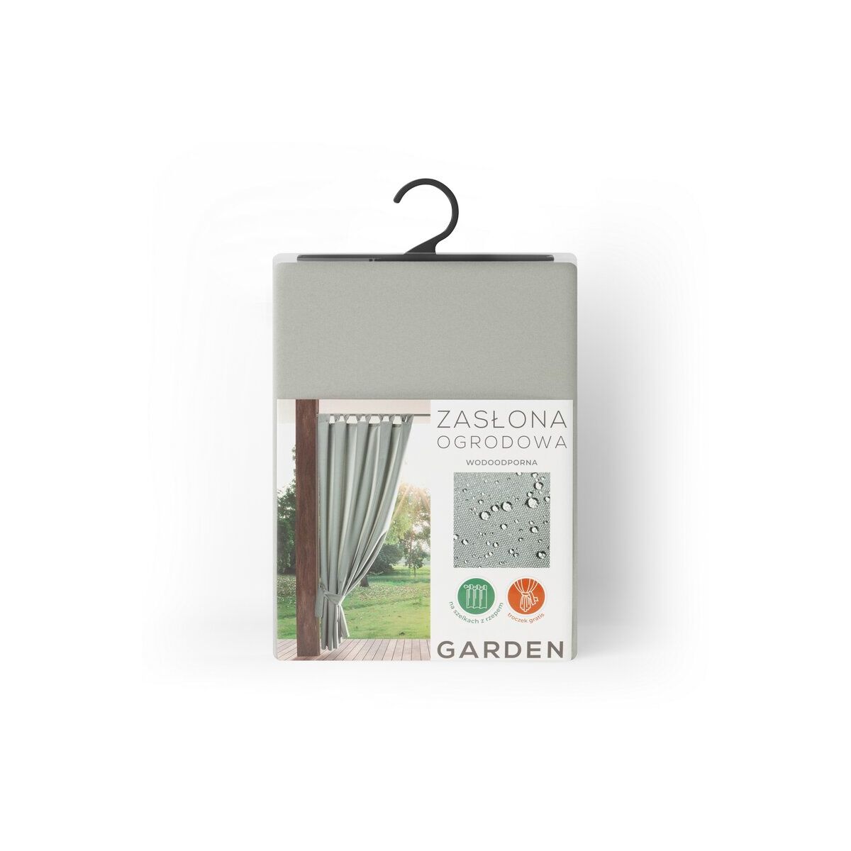 Valmis kasutamiseks mõeldud õuekardin, veekindel, takjapaeltega kinnitatud aasadega.