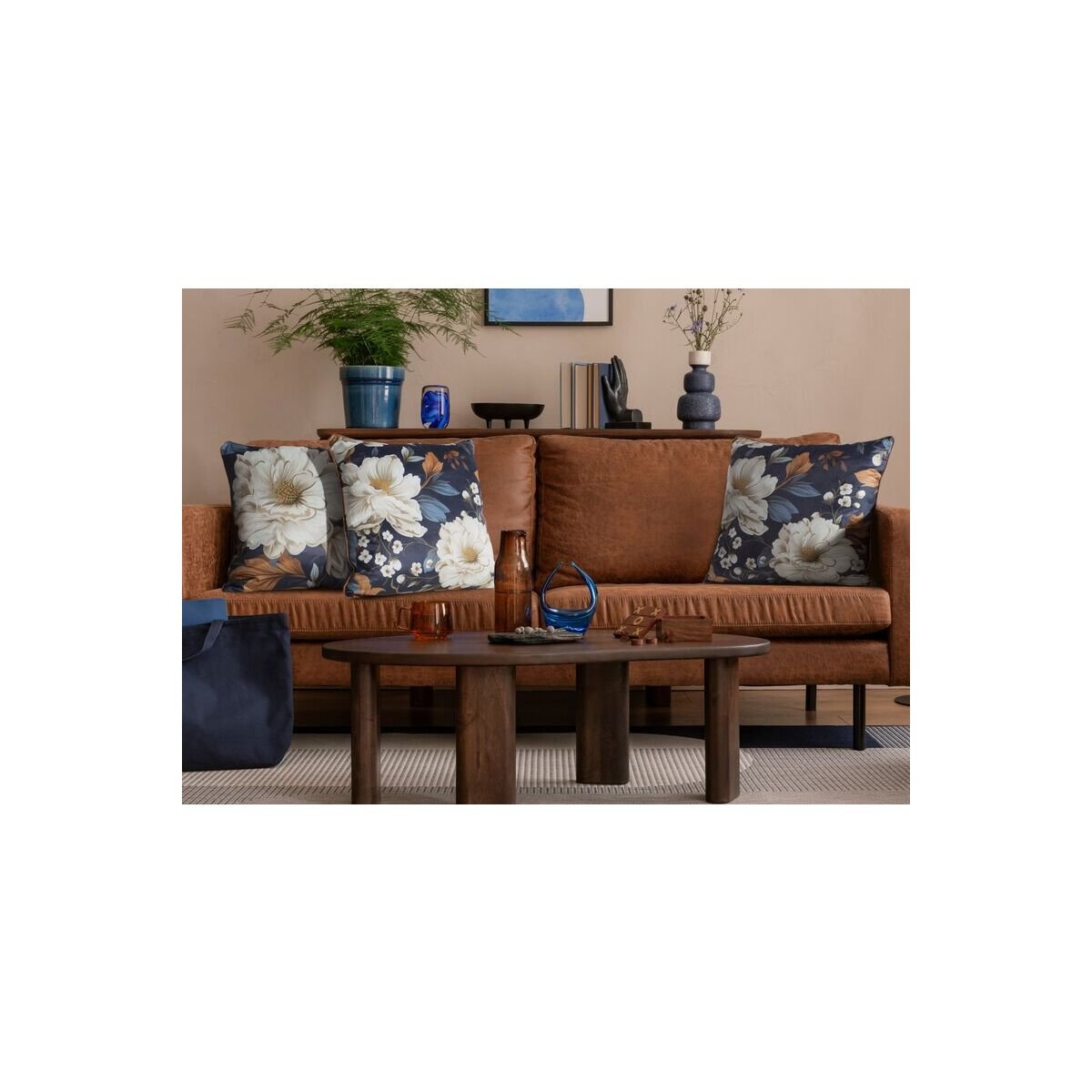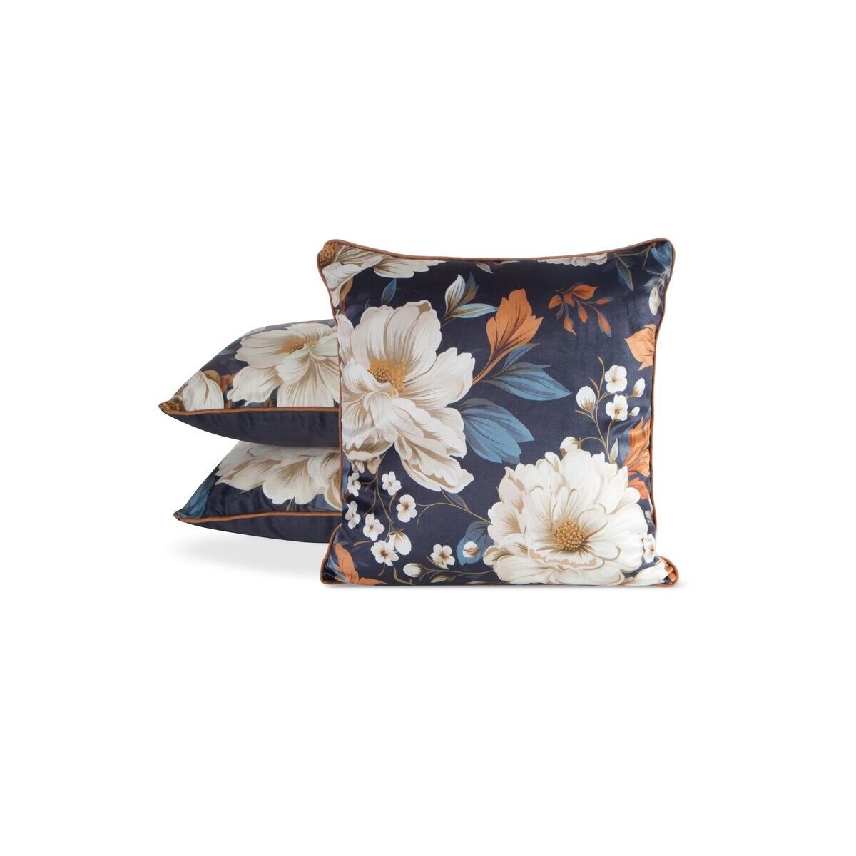 Velvetist padjakate botaanilise prindi ja triibuga. Mõõtmed: 45 cm lai x 45 cm pikk, värv: tumesinine. Kanga kaal: 200 GSM. Koostis: 100% polüester.