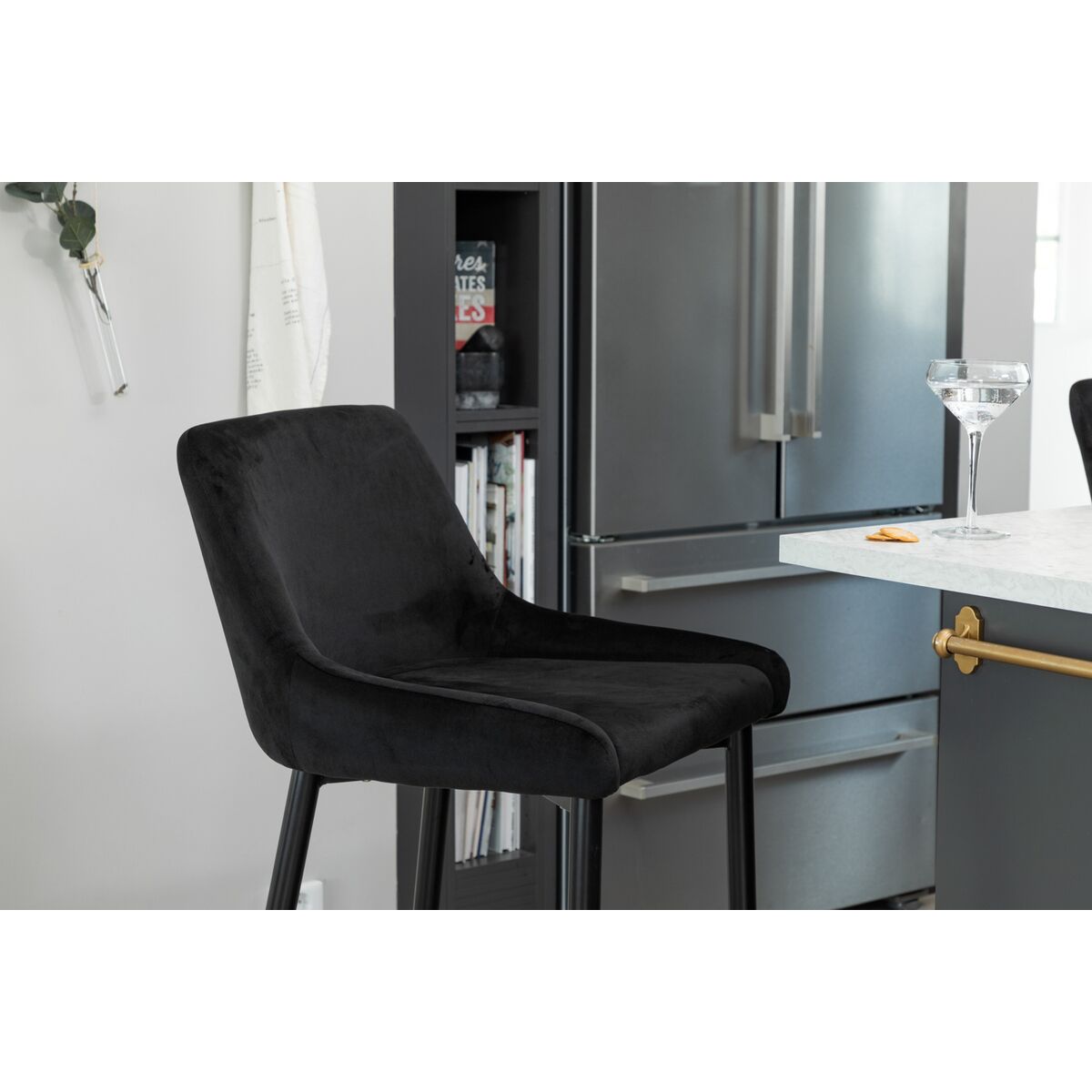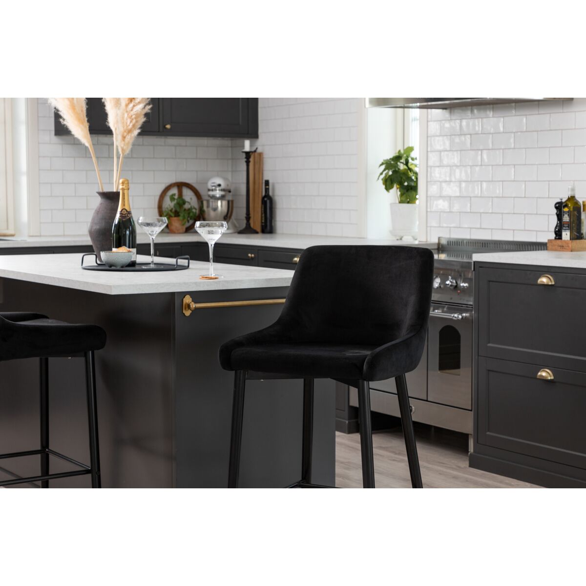 Ärge tehke disaini või mugavuse osas järeleandmisi Plaza seeria baaritoolidega! Disain on läbimõeldud: iste on täielikult kaetud polsterdatud musta sametkangaga, õhukesed jalad on musta pulbervärviga metallist ja olemas on integreeritud jalatugi lisamugavuseks. Vajab osalist kokkupanekut. Hooldussoovitused: kangast tuleks enne kasutamist immutada kangaspihustiga, mis lihtsustab tulevikus mustuse ja plekkide eemaldamist. Eemaldage plekid kohe, ärge hõõruge, vaid proovige neid õrnalt lapiga imada.