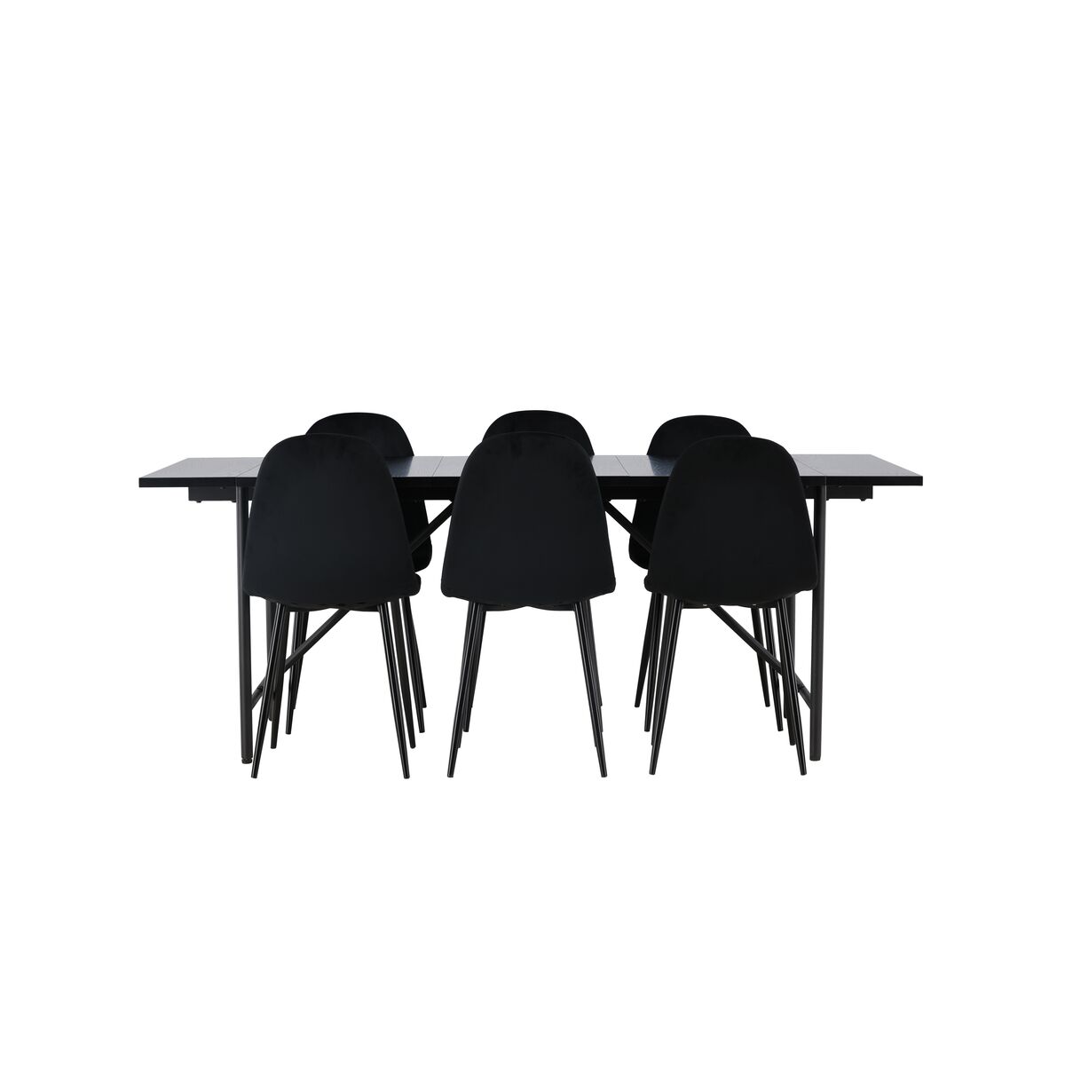 Polar & Astrid söögitoolide komplekt 2 tk must + ristkülikukujuline söögilaud 200 x 90 must (GR23528)