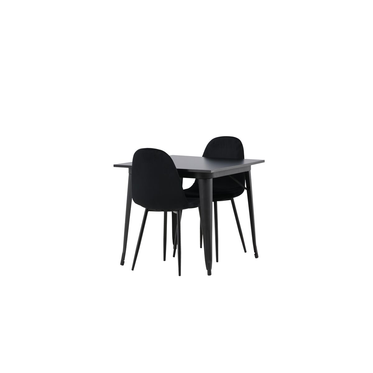 Väike, kuid võluv söögitoakomplekt kahele – ideaalne väikese köögi jaoks! Sellel söögilaual on klassikaline, ruudukujuline disain ja ajatult must värvitoon. Lauaplaat on valmistatud mustast MDF-ist ja lauajalad on musta metalliga. Komplektis on lisaks kaks söögitooli Polar seeriast, millel on elegantne tahmunud must viimistlus. Toolid on täielikult polsterdatud ning kaetud musta sametkangaga, millele on lisatud pehme polsterdus. Jalad on musta pulbervärvitud metalliga. Loo harmoonia mugavuse ja disaini vahel, ilma ühegi kompromissita!