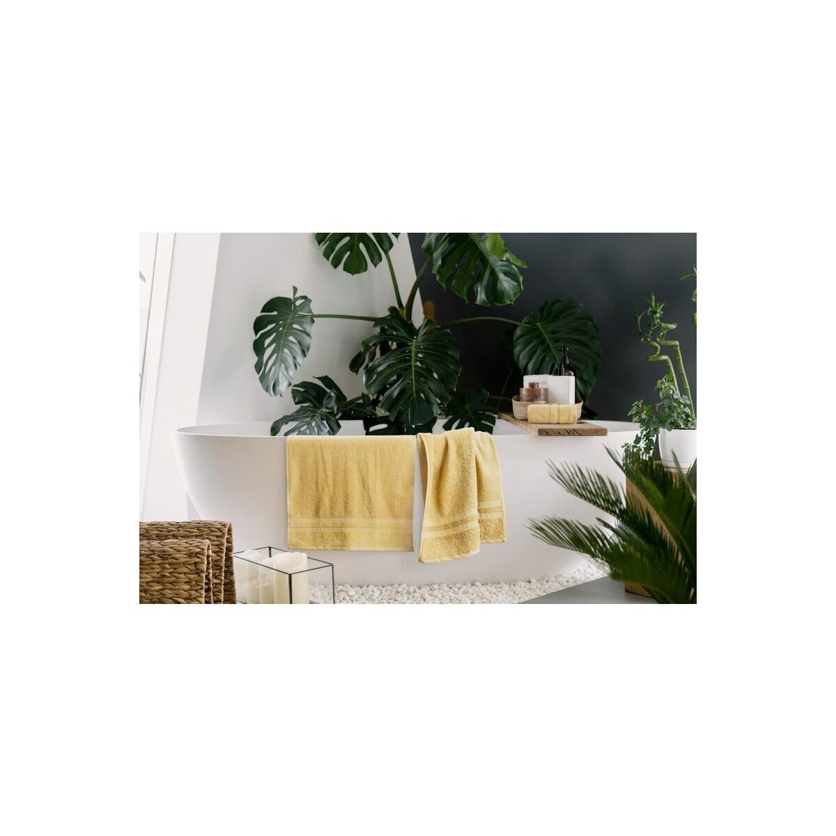 Elegantne rätik, valmistatud pehmest ja väga imavast froteekangast ühte tooni värviga. Servad on kaunistatud peene veluuräärisega, muutes selle stiilseks lisandiks teie vannituppa. Lihtne pesta, värvid püsivad pikalt kirkana.