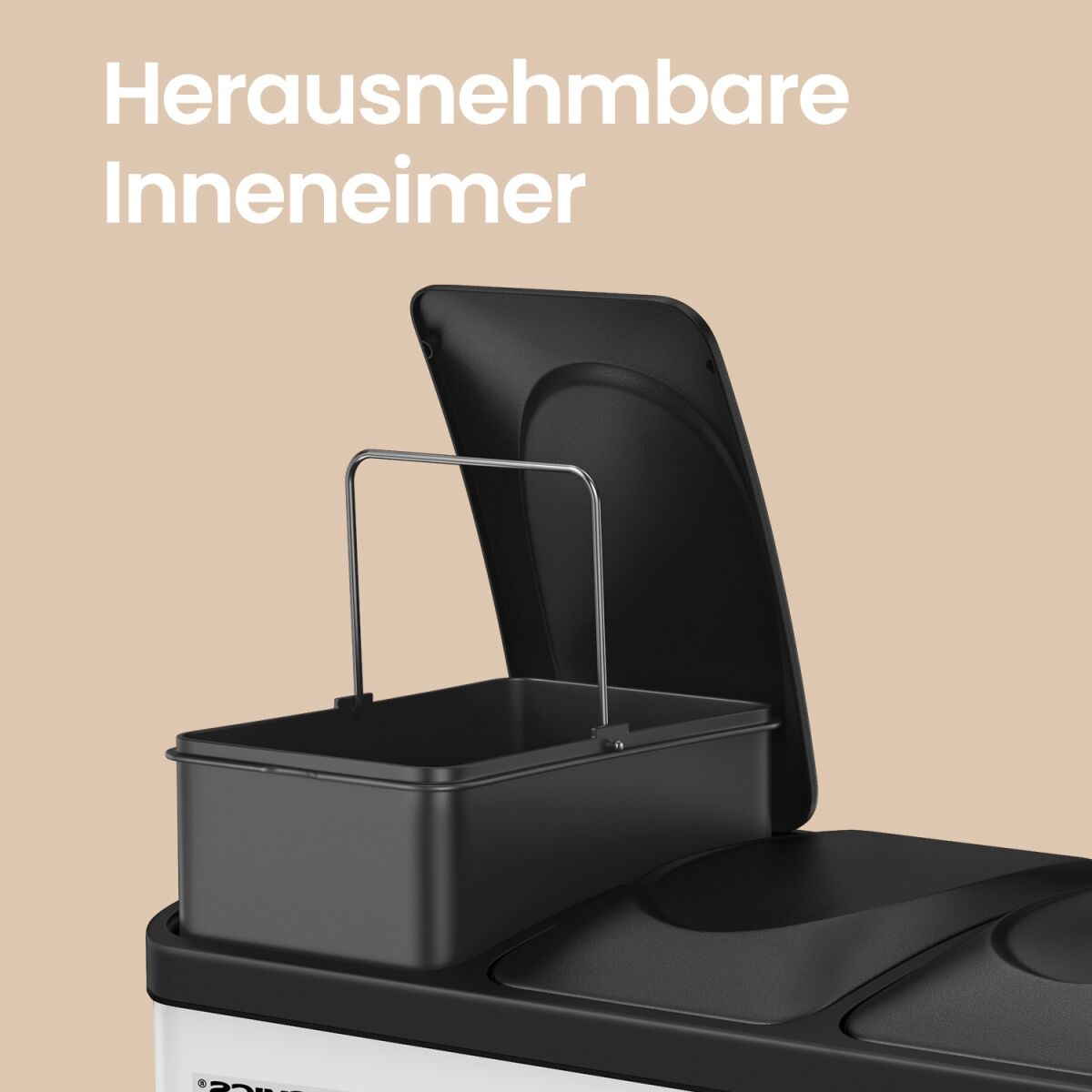 – Materjal: Välimine konteiner terasest, sisemised ämbrit PP plastikust, kaas ABS plastikust